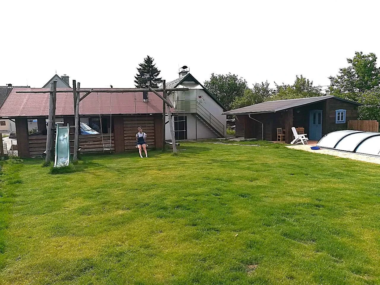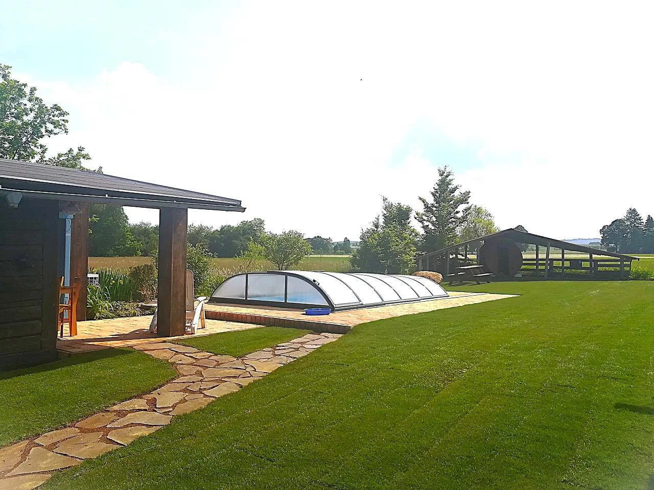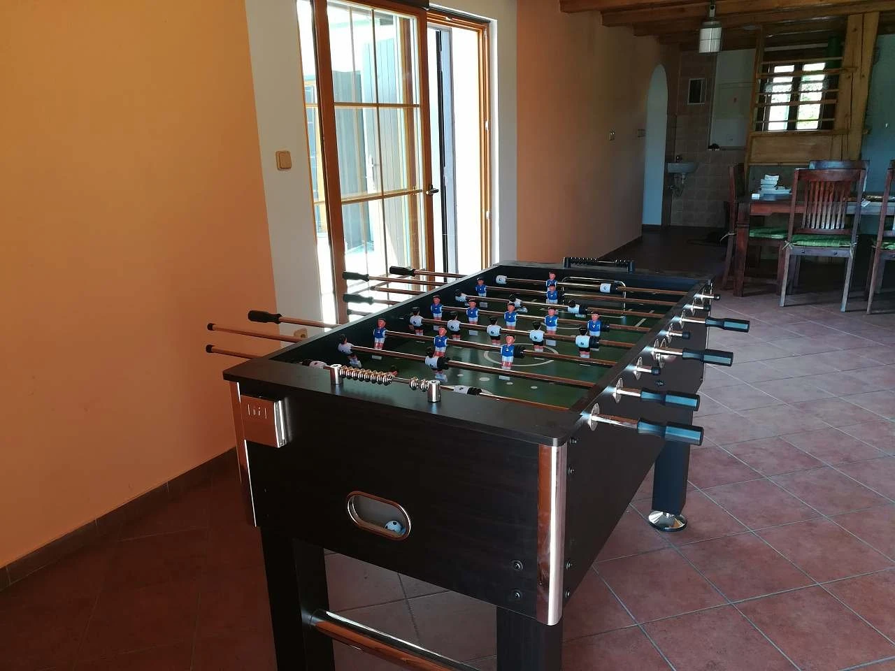 Součástí vybavení je vyhřívaný venkovní bazén se slanou vodou, sauna, vnitřní i venkovní krb, velká pergola s posezením, venkovní kuchyňský kout s udírnou a dostatek prostoru pro pobyt venku. Pro děti je k dispozici trampolína, houpačka, pískoviště, herní prvky a dětský domek, dále stolní tenis, fotbálek a šipky. Mazlíčci jsou povoleni.