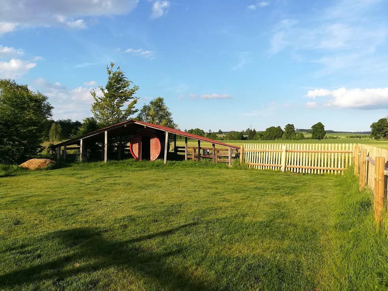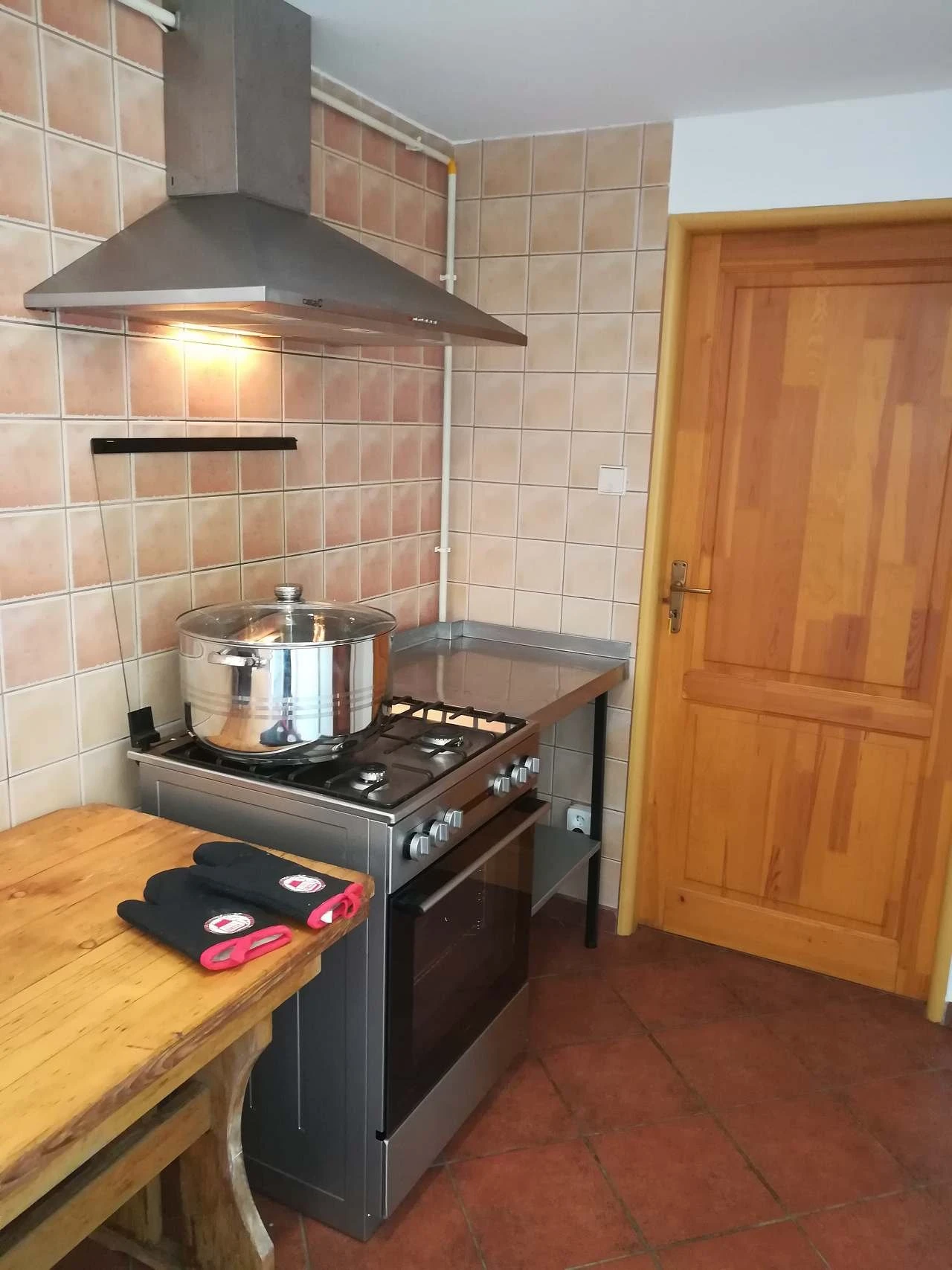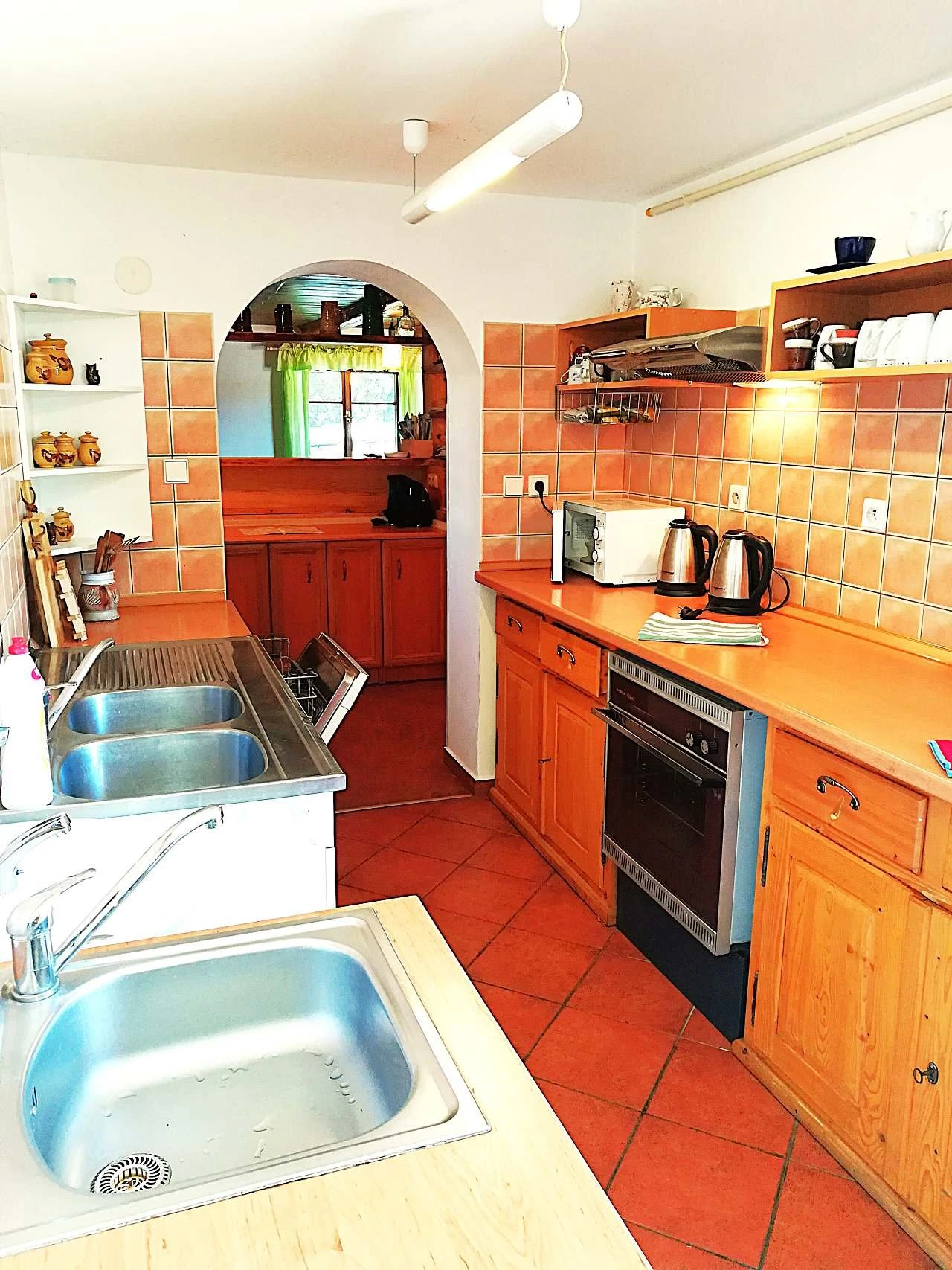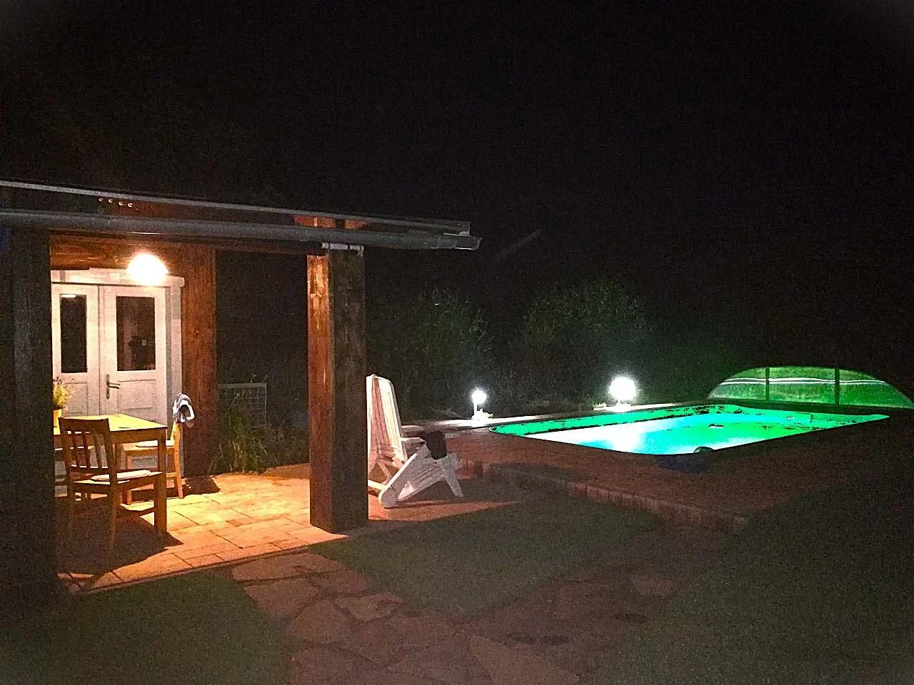 Součástí vybavení je vyhřívaný venkovní bazén se slanou vodou, sauna, vnitřní i venkovní krb, velká pergola s posezením, venkovní kuchyňský kout s udírnou a dostatek prostoru pro pobyt venku. Pro děti je k dispozici trampolína, houpačka, pískoviště, herní prvky a dětský domek, dále stolní tenis, fotbálek a šipky. Mazlíčci jsou povoleni.