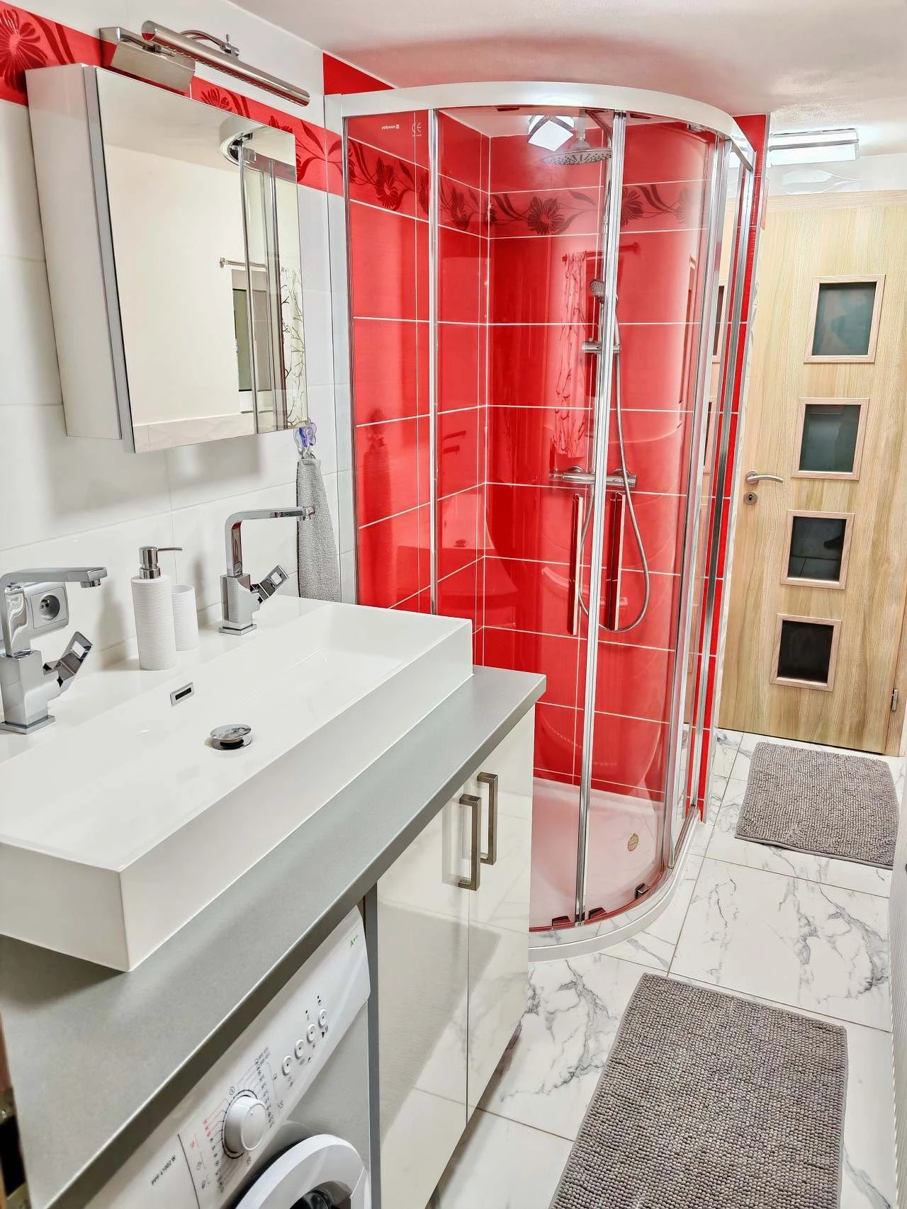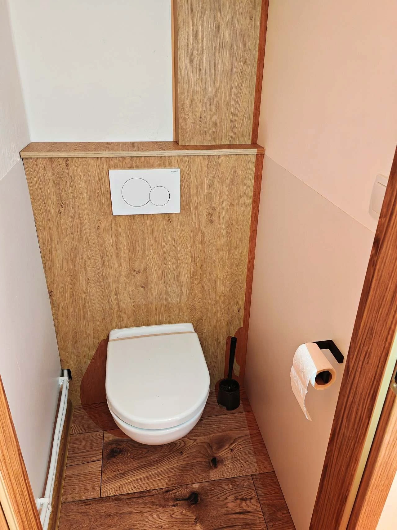 Chalupa má koupelnu se sprchovým koutem, umyvadlem, WC a pračkou a dále samostatné WC. Dům je vytápěn plynovým kotlem a krbovými kamny na dřevo, což umožňuje komfortní pobyt i v zimních měsících.