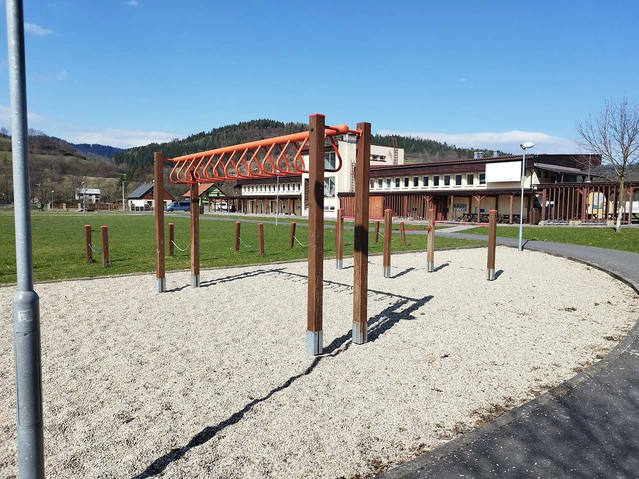 Chalupa u hřiště se nachází ve vesnici Halenkov v Beskydech a poskytuje ubytování pro až 10 osob (8 lůžek + 2 přistýlky) ve 3 ložnicích. Dům je vybaven plně vybavenou kuchyňskou linkou s jídelnou, prostorným obývacím pokojem s televizí a stolním fotbálkem. V dolní části je jeden pokoj s manželskou postelí, v horní části dva další pokoje. K dispozici je 1 koupelna – s pračkou, sprchovým koutem a WC. A další samostatné WC.