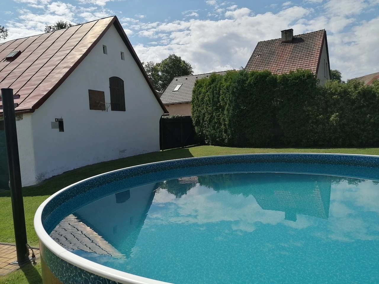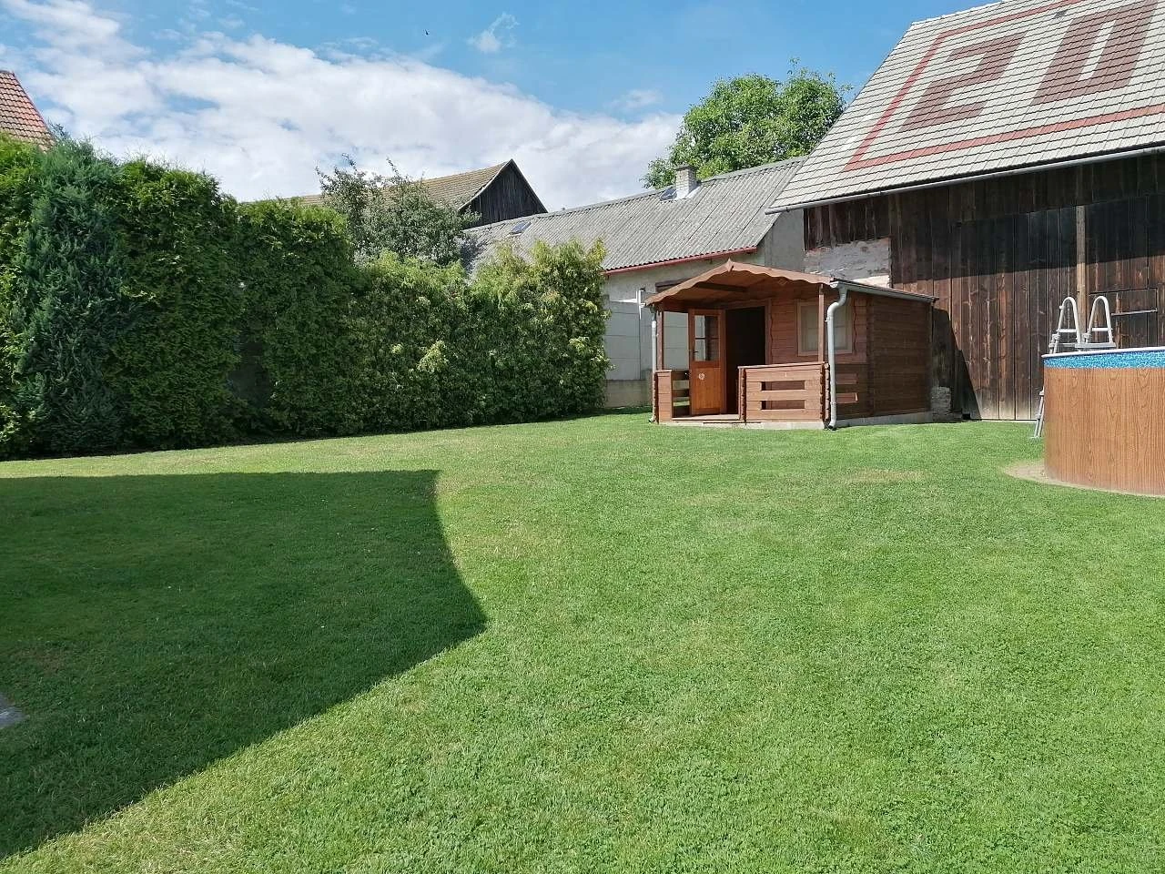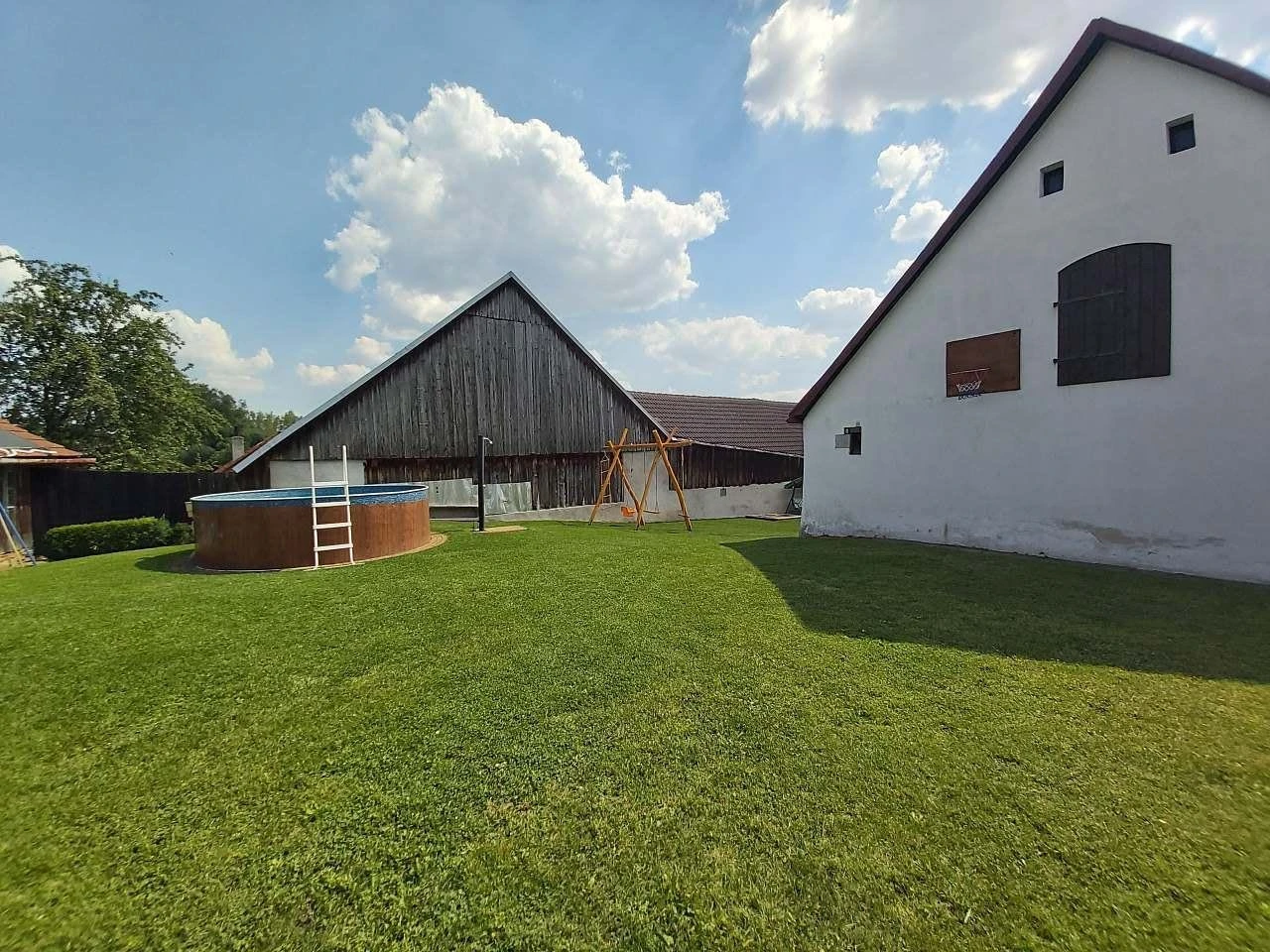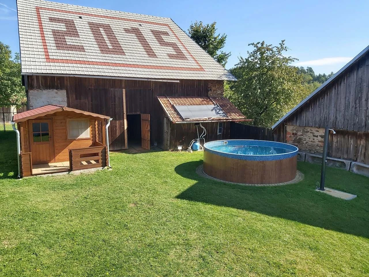 Součástí objektu je uzavřený dvůr, udržovaná zahrada, terasa a přilehlá stodola, které poskytují dostatek prostoru pro pobyt venku, hry dětí i sportovní aktivity. K venkovnímu vybavení patří bazén, koupací sud s filtrací a ohřevem na dřevo, venkovní krb a možnost posezení. Dřevo na topení je po dobu pobytu k dispozici. Koupací sud lze využívat opakovaně, přičemž udržení teploty vody nevyžaduje dlouhý opětovný ohřev.