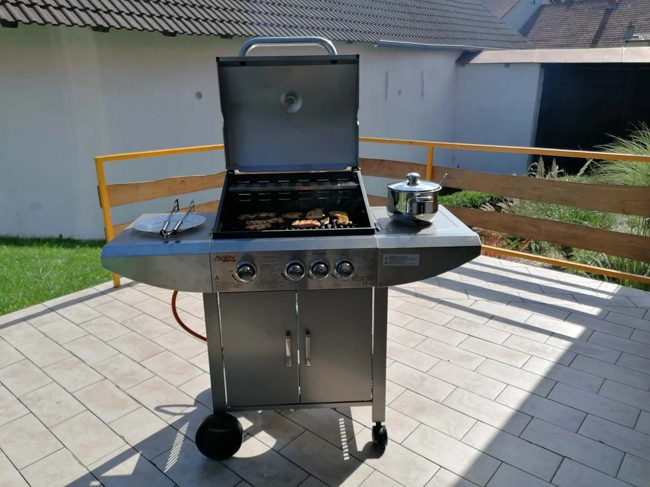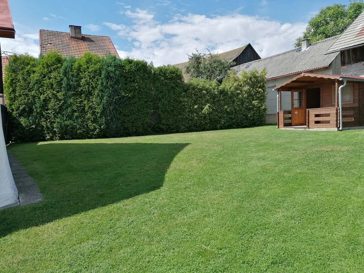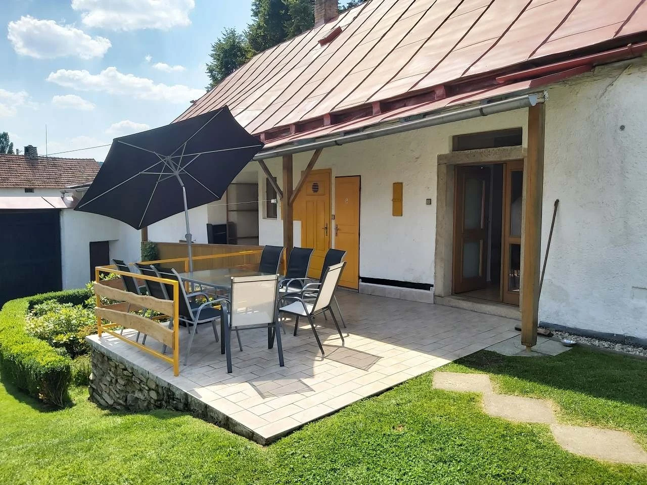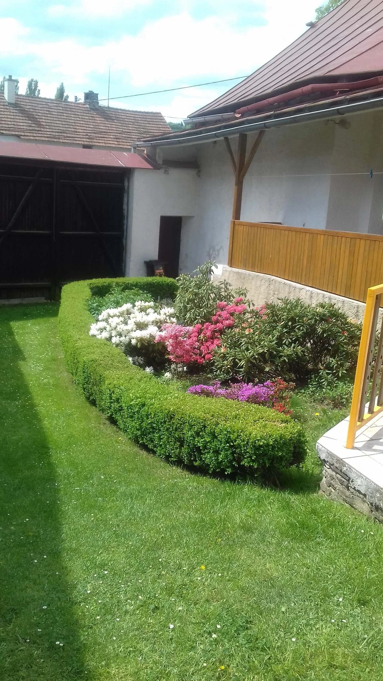 Součástí objektu je uzavřený dvůr, udržovaná zahrada, terasa a přilehlá stodola, které poskytují dostatek prostoru pro pobyt venku, hry dětí i sportovní aktivity. K venkovnímu vybavení patří bazén, koupací sud s filtrací a ohřevem na dřevo, venkovní krb a možnost posezení. Dřevo na topení je po dobu pobytu k dispozici. Koupací sud lze využívat opakovaně, přičemž udržení teploty vody nevyžaduje dlouhý opětovný ohřev.