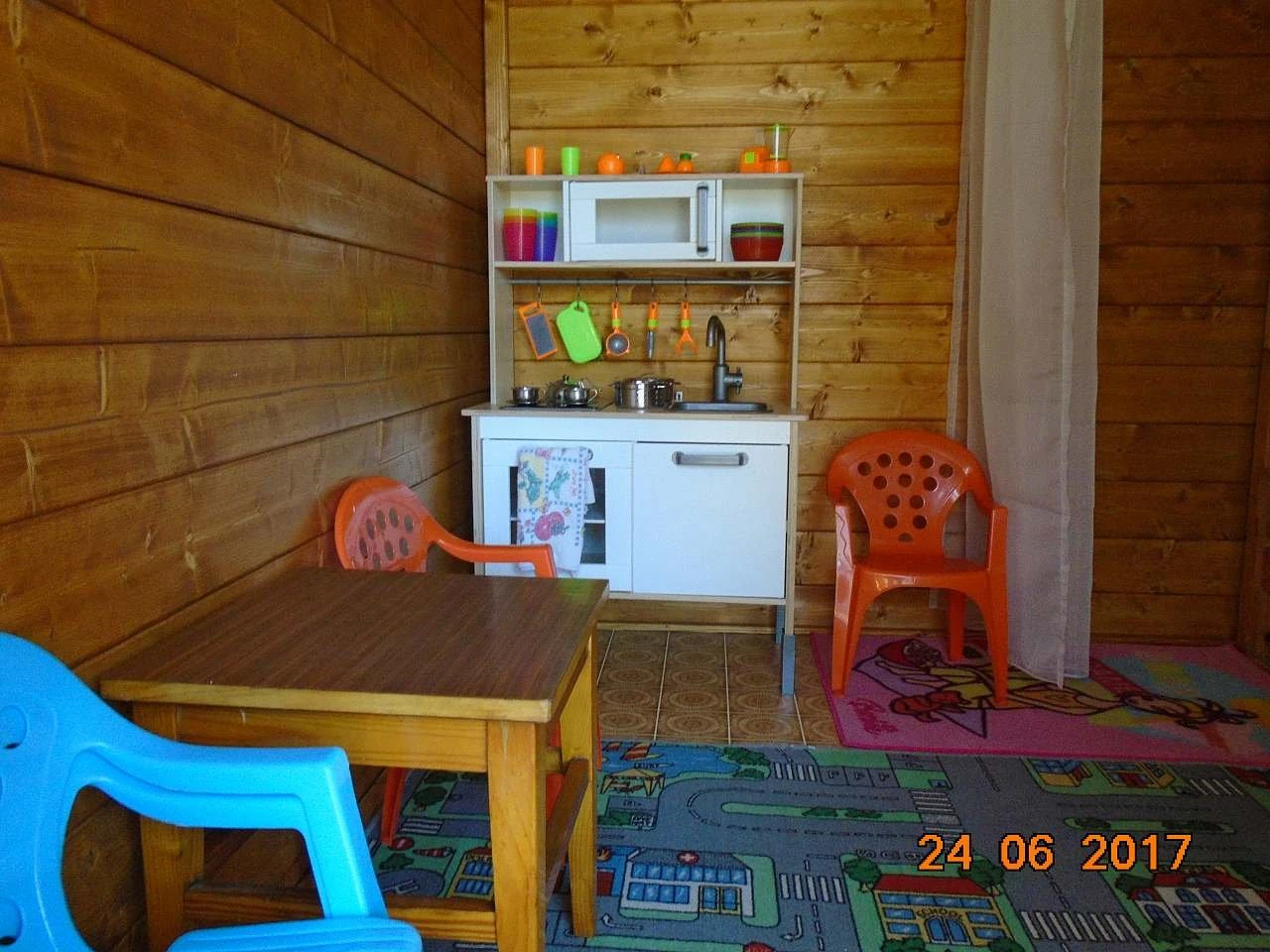 Na dvoře se nachází dětská herní chatička, která je k dispozici pouze v letní sezóně a není vytápěná. Sociální zázemí zahrnuje koupelnu se sprchovým koutem, umyvadlem, WC, pračkou a fénem. K dispozici je také druhé samostatné WC, které je přístupné ze zápraží a je určeno především pro letní provoz.