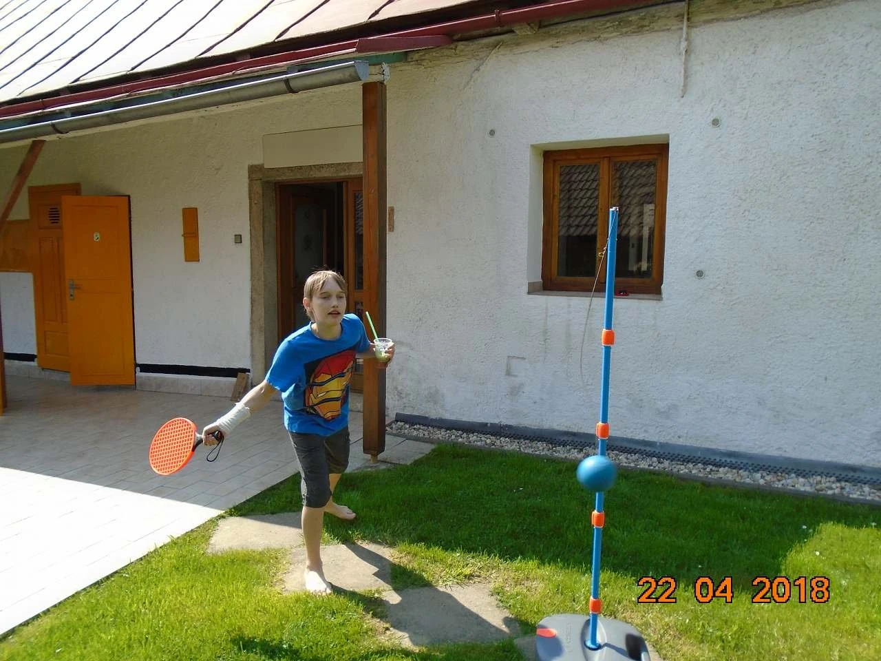 Ve stodole je k dispozici trampolína s ochrannou sítí, kterou lze využívat jak venku, tak uvnitř stodoly v případě nepříznivého počasí. Dále jsou zde k zapůjčení venkovní hry (badminton, líný tenis, petanque, KUBB, kroket, mikado), různé míče, švihadla, odrážedla, hračky na písek, skluzavka a dostatek dřeva do krbu i na grilování.