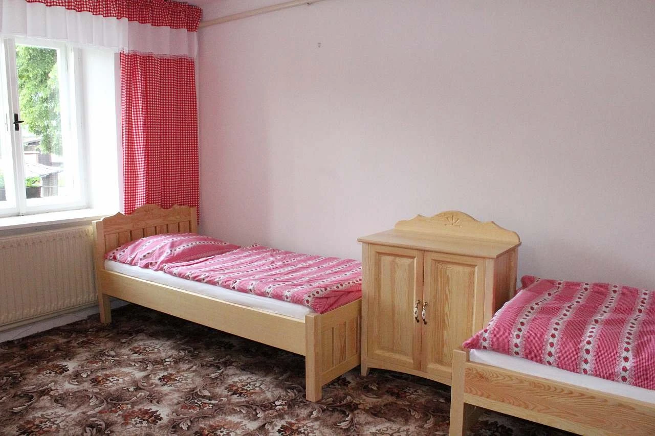 Ubytování nabízí tři samostatné ložnice s celkovou kapacitou 10 lůžek. Všechny ložnice jsou vybaveny nábytkem z masivu, kvalitními zdravotními matracemi, bavlněným ložním prádlem a prostěradly. První ložnice je vybavena televizí a disponuje manželskou postelí a dvěma jednolůžkovými postelemi. Druhá ložnice má postel s výsuvným lůžkem a patrovou postel. Třetí ložnice je vybavena manželskou postelí o šířce 140 cm.