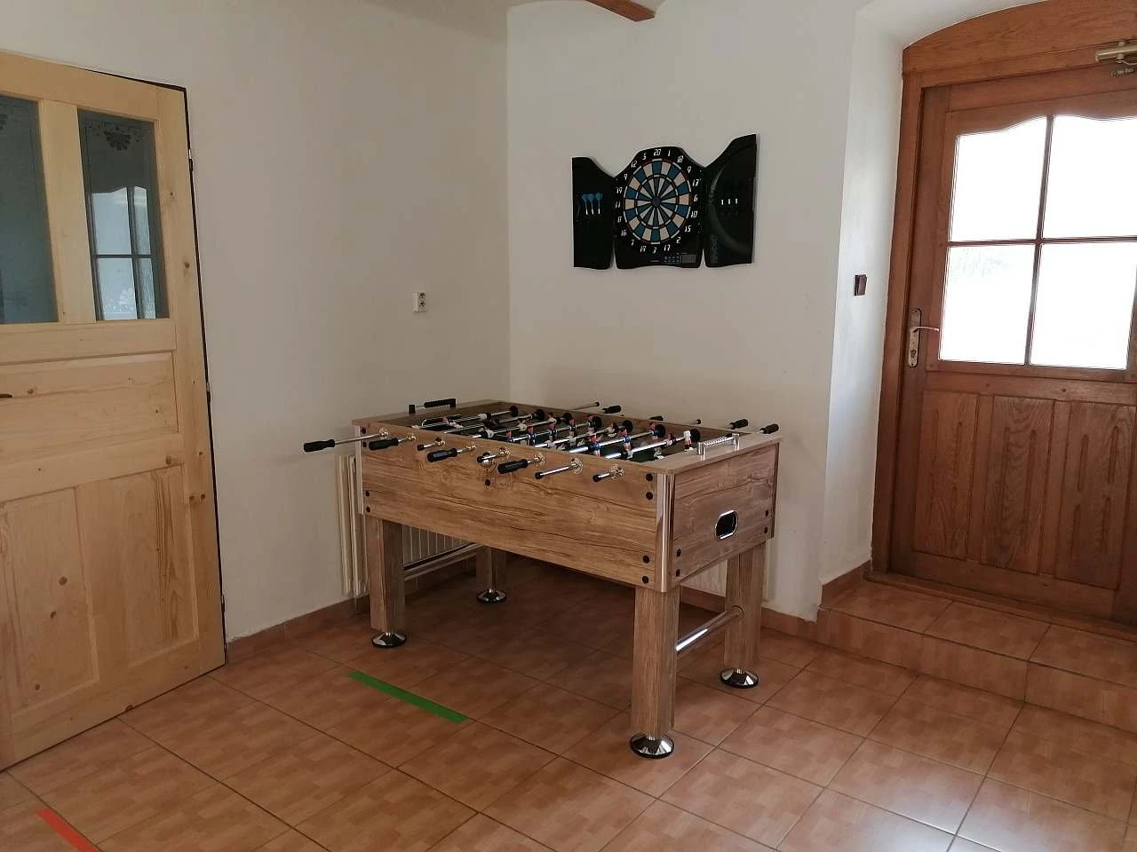 Součástí chalupy je společenská místnost, která je vybavena krbovými kamny, televizí s USB, pingpongovým stolem včetně pálek, stolním fotbalem, šipkami a deskovými hrami. K dispozici je také letní kuchyň s varnou konvicí. Pro uložení kol lze využít stodolu nebo společenskou místnost.