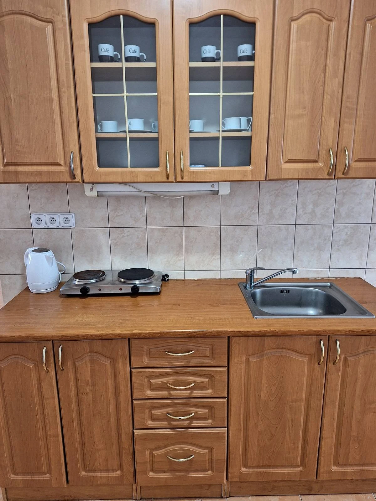 - Plně vybavená kuchyň s ledničkou, rychlovarnou konvicí a mikrovlnnou troubou