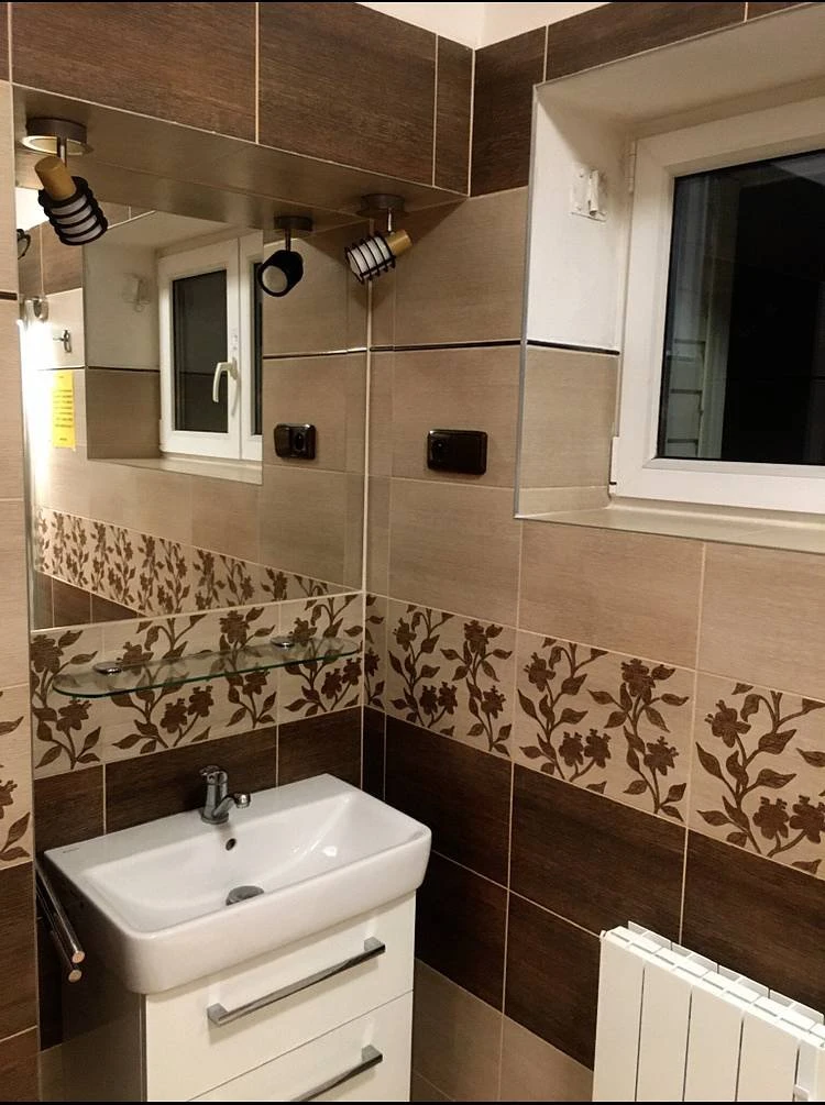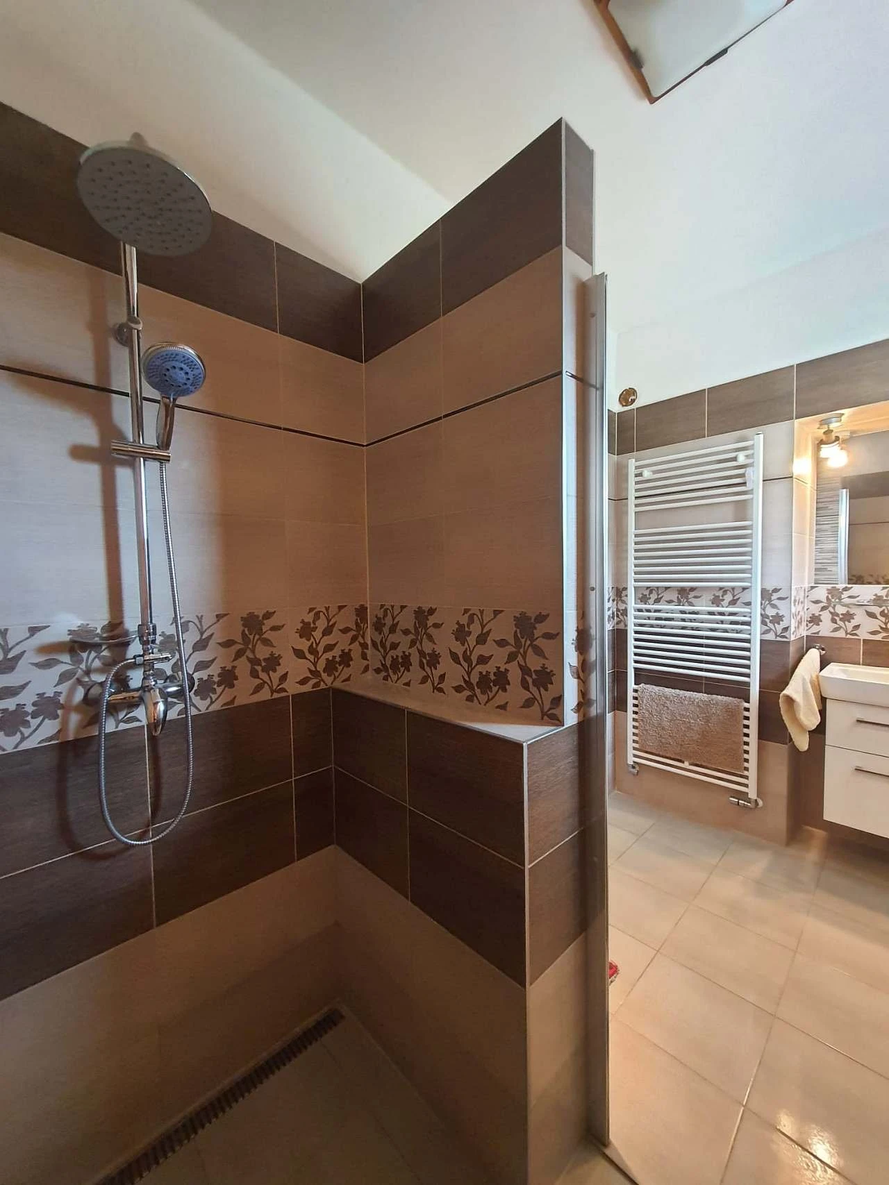 Sociální zařízení: dvě koupelny s elektrickým bojlerem na teplou vodu, jedna s vanou a pračkou.