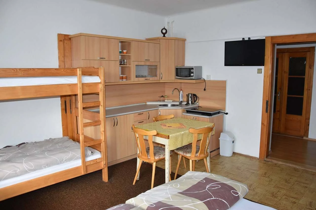 - Vytápěná společenská místnost s kuchyňským zázemím pro vaření a stolování.