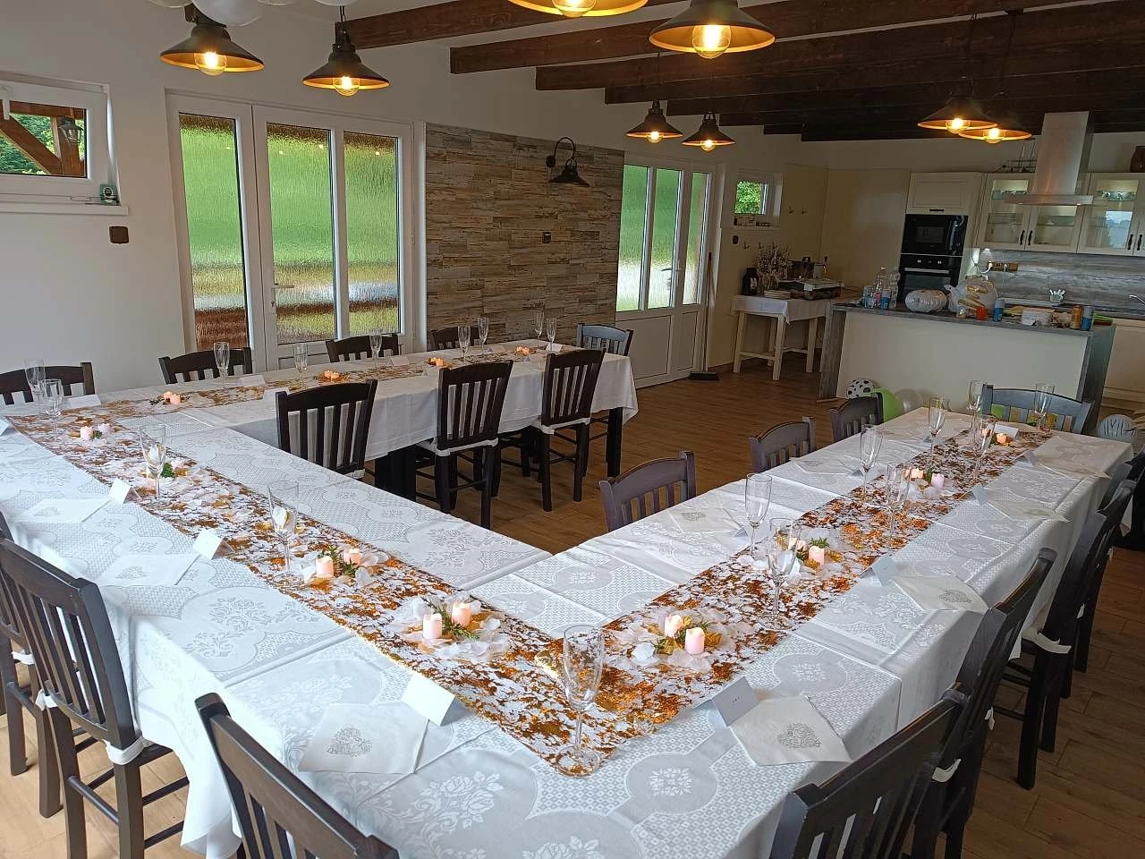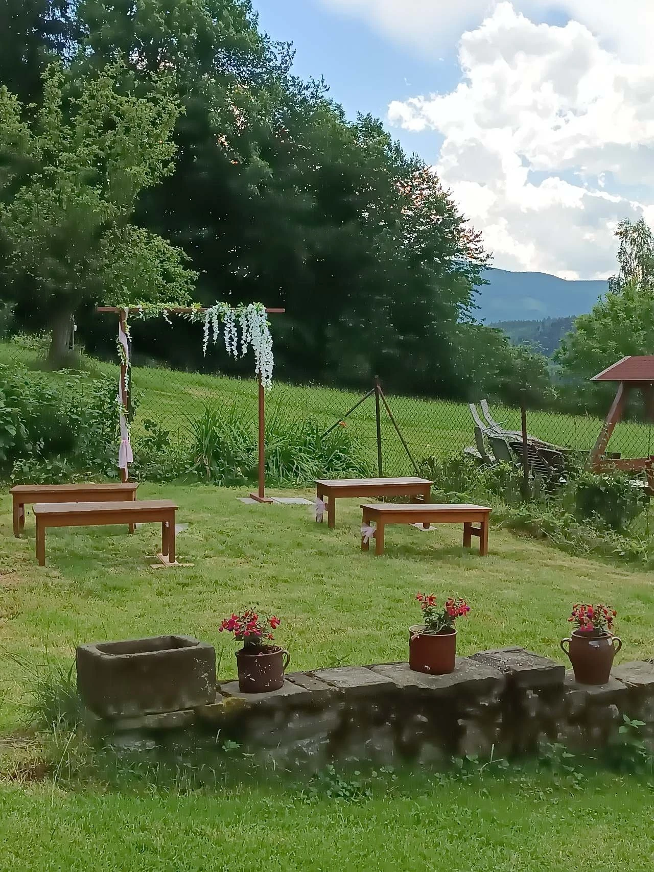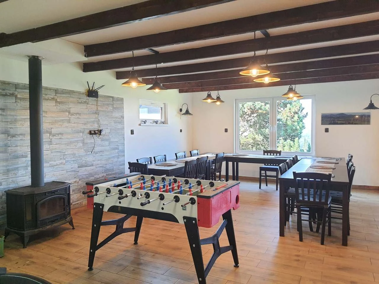 - K dispozici audio systém s repro a karaoke, stolní fotbálek, šipky, venkovní pergola a táborákové ohniště pro doplňkové aktivity při oslavách.