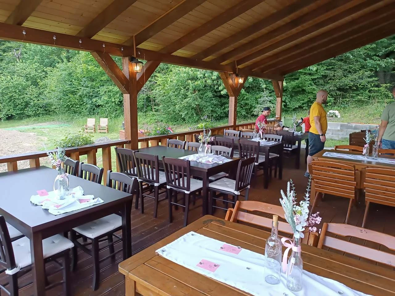 - Pronájem samostatné dřevěnky s velkou společenskou místností (5×10 m) pro stolování a oslavy až 20–28 osob.
