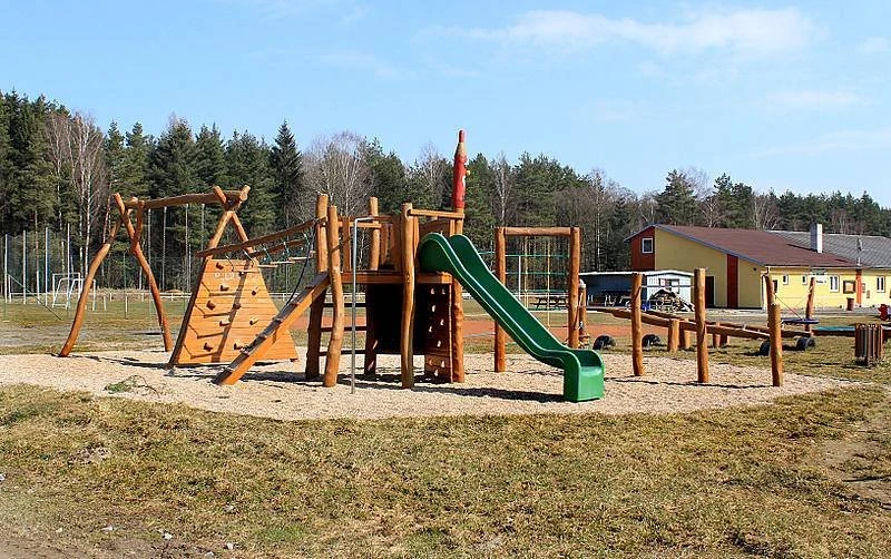 - Dětské hřiště: skluzavka, pískoviště, horolezecká stěna, 2 houpačky, kuželky