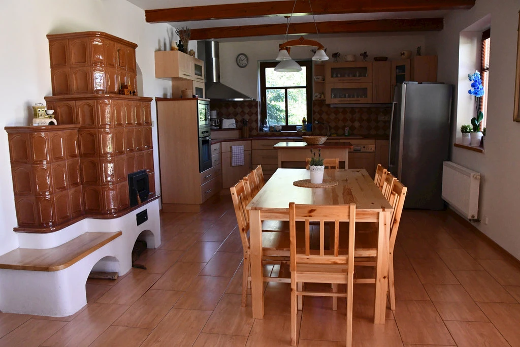 V ceně ubytování je zahrnuto: dřevo do krbu, ložní prádlo, dětská postýlka, parkování, povlečení + ručníky, vybavená kuchyň včetně nádobí a spotřebičů