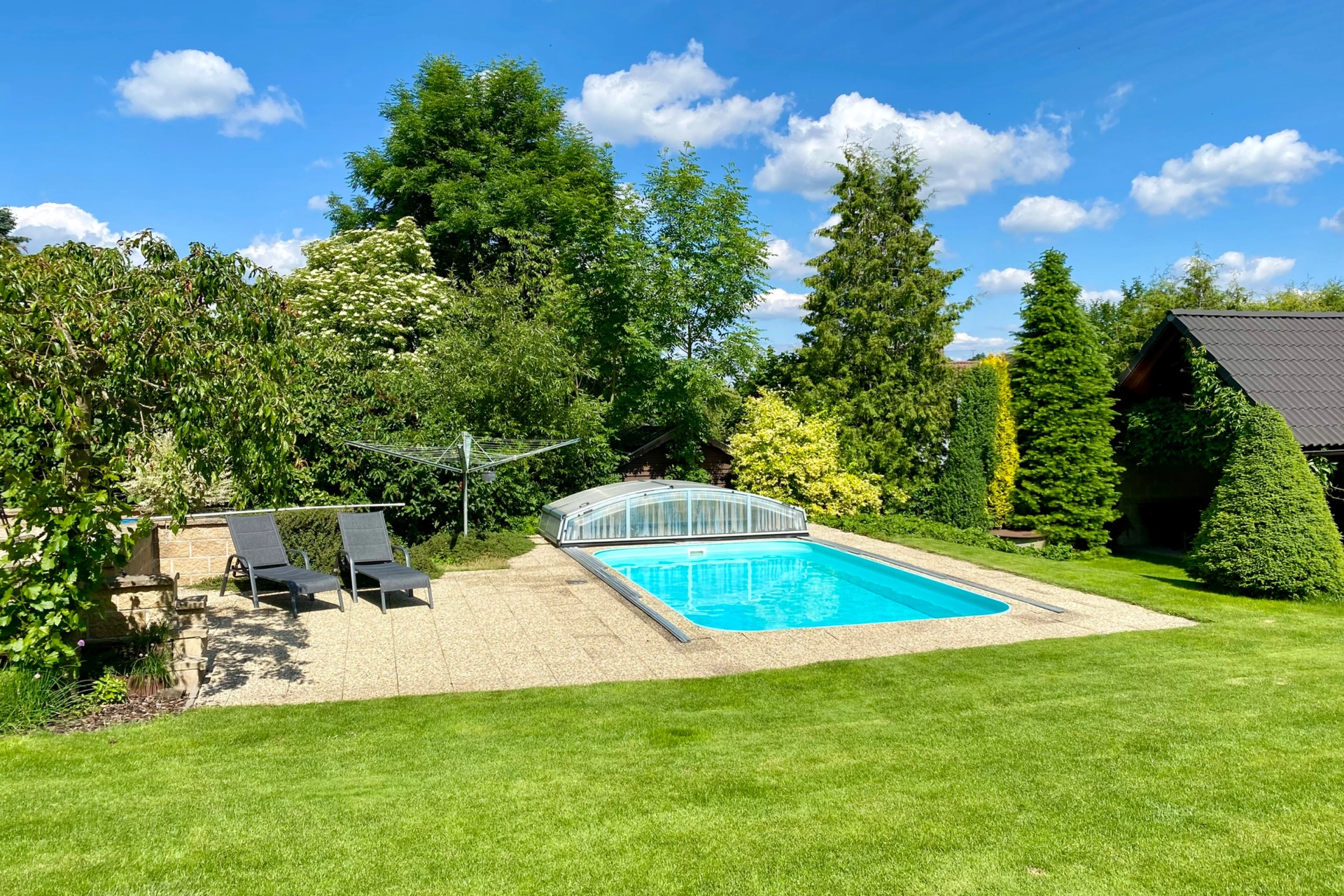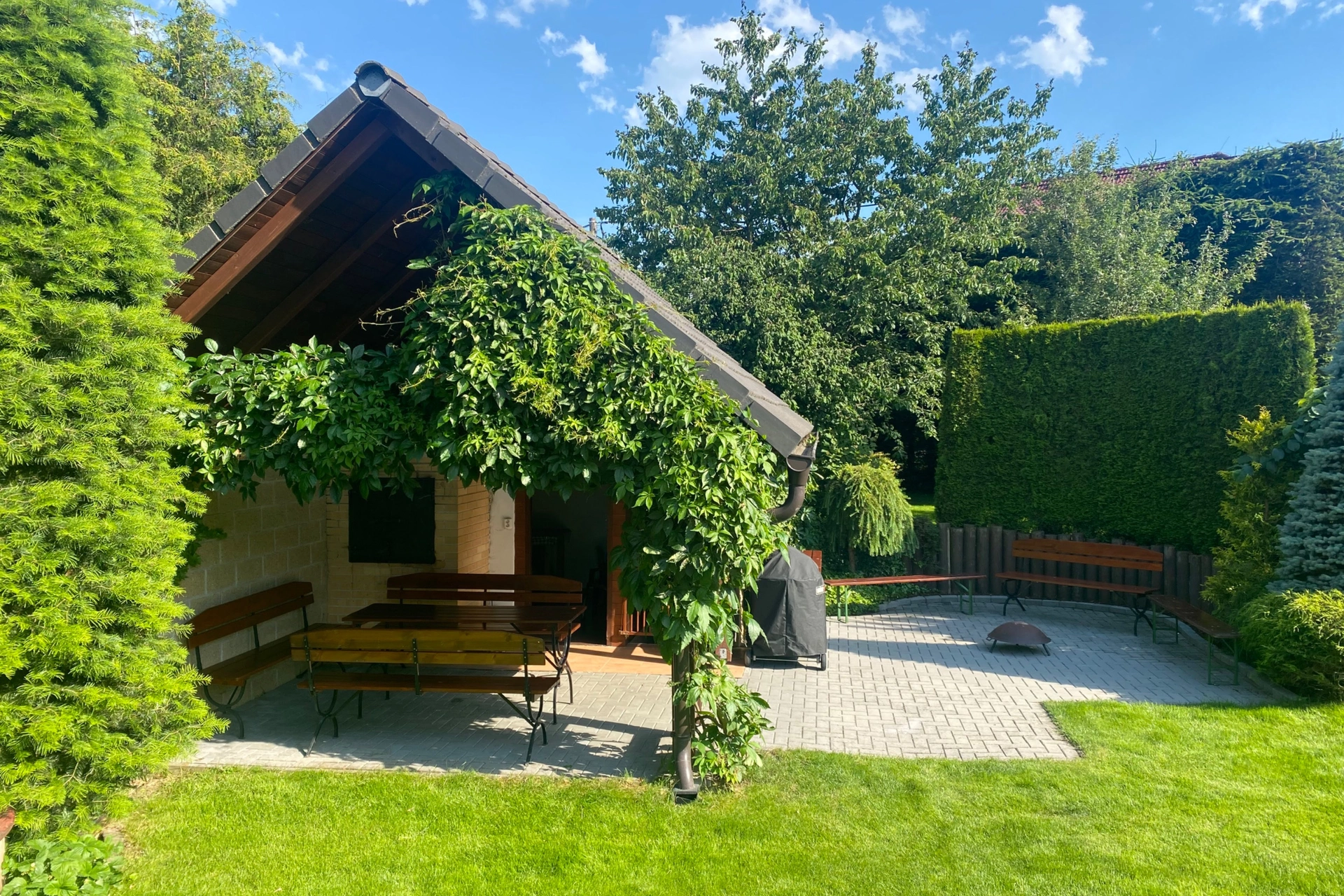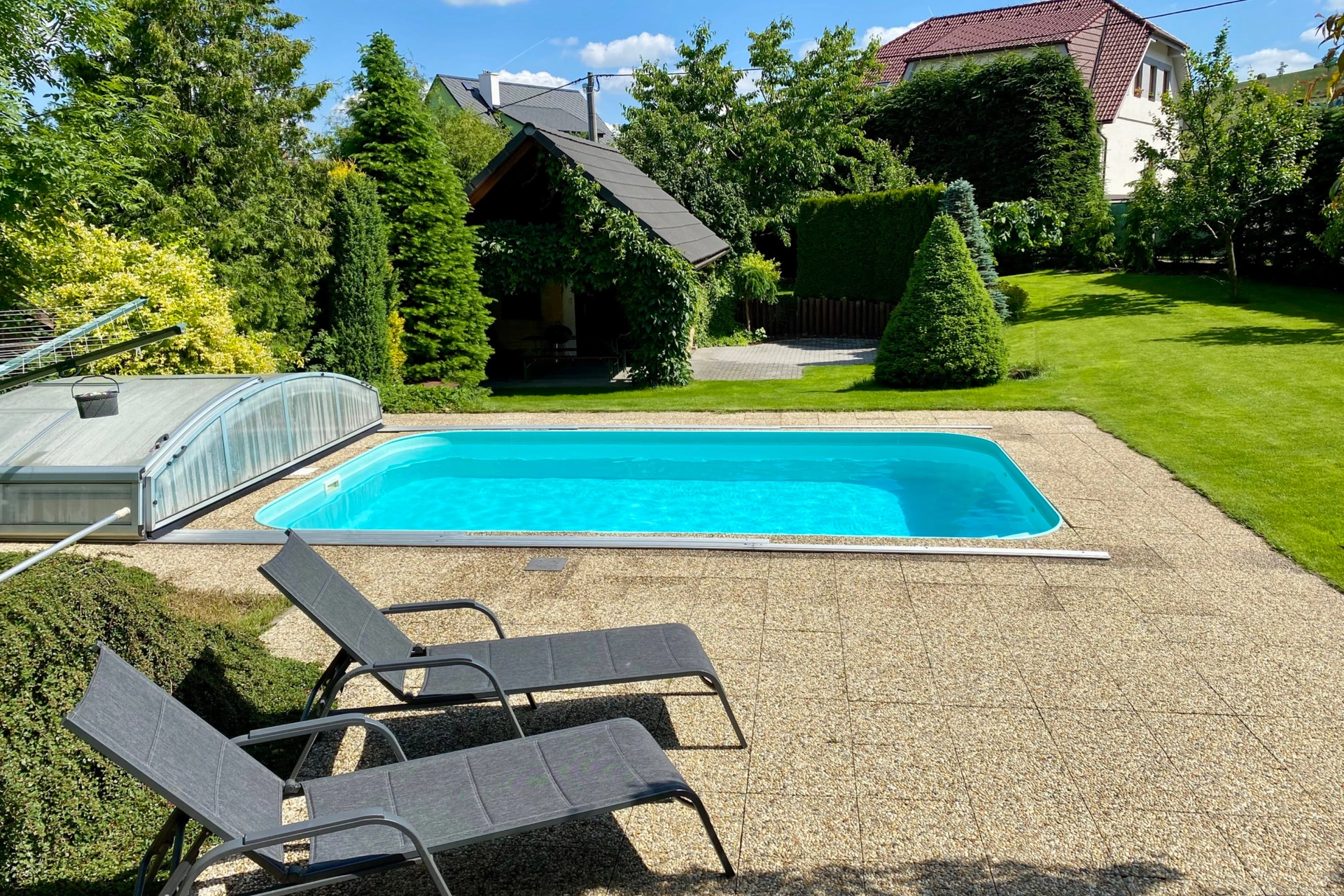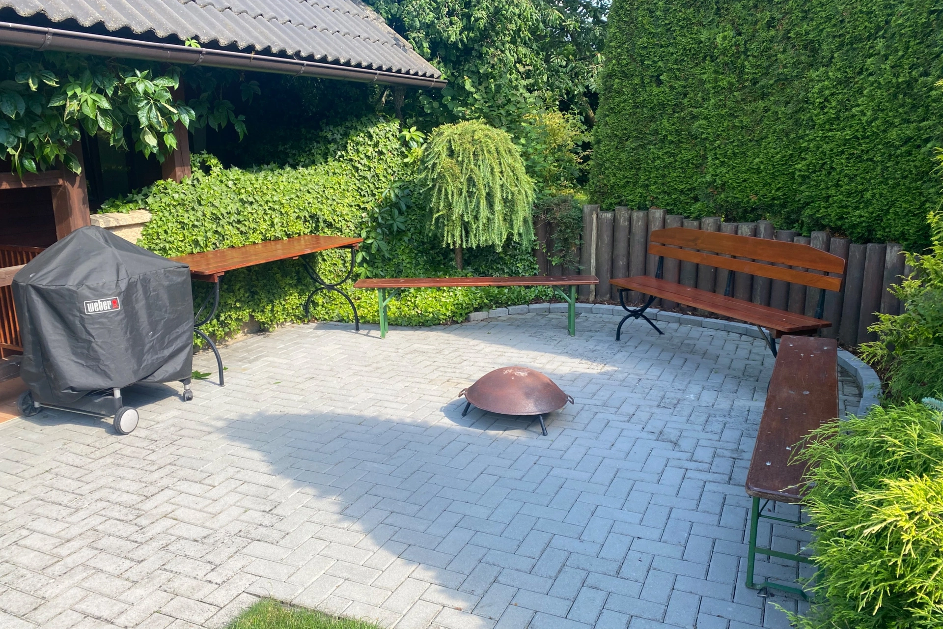 Hosté mohou využívat venkovní bazén v letních měsících a celoročně dostupnou vířivou vanu. Rozlehlá oplocená zahrada poskytuje prostor k relaxaci i venkovním aktivitám. K dispozici je terasa s posezením, gril, ohniště a vybavení pro děti.