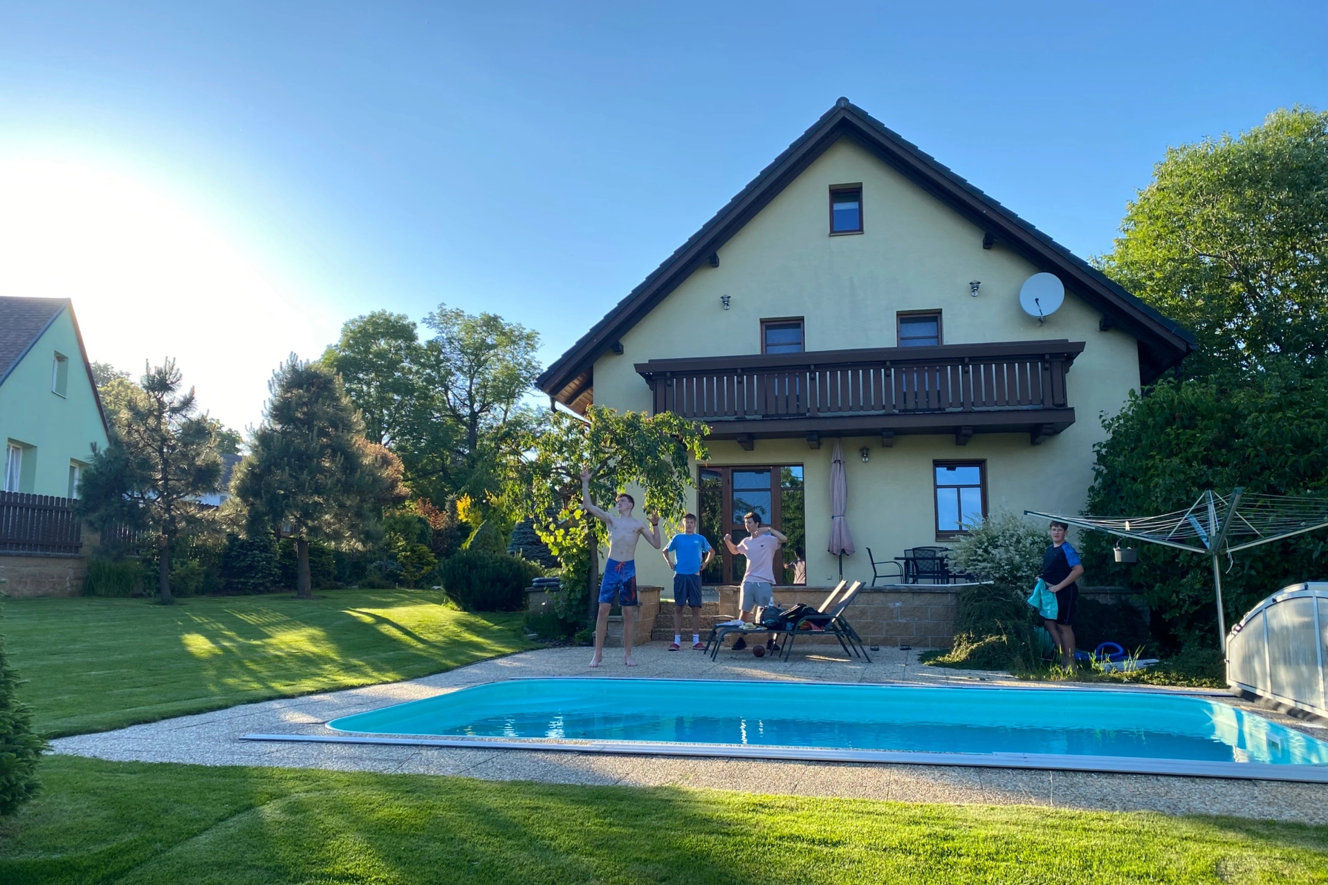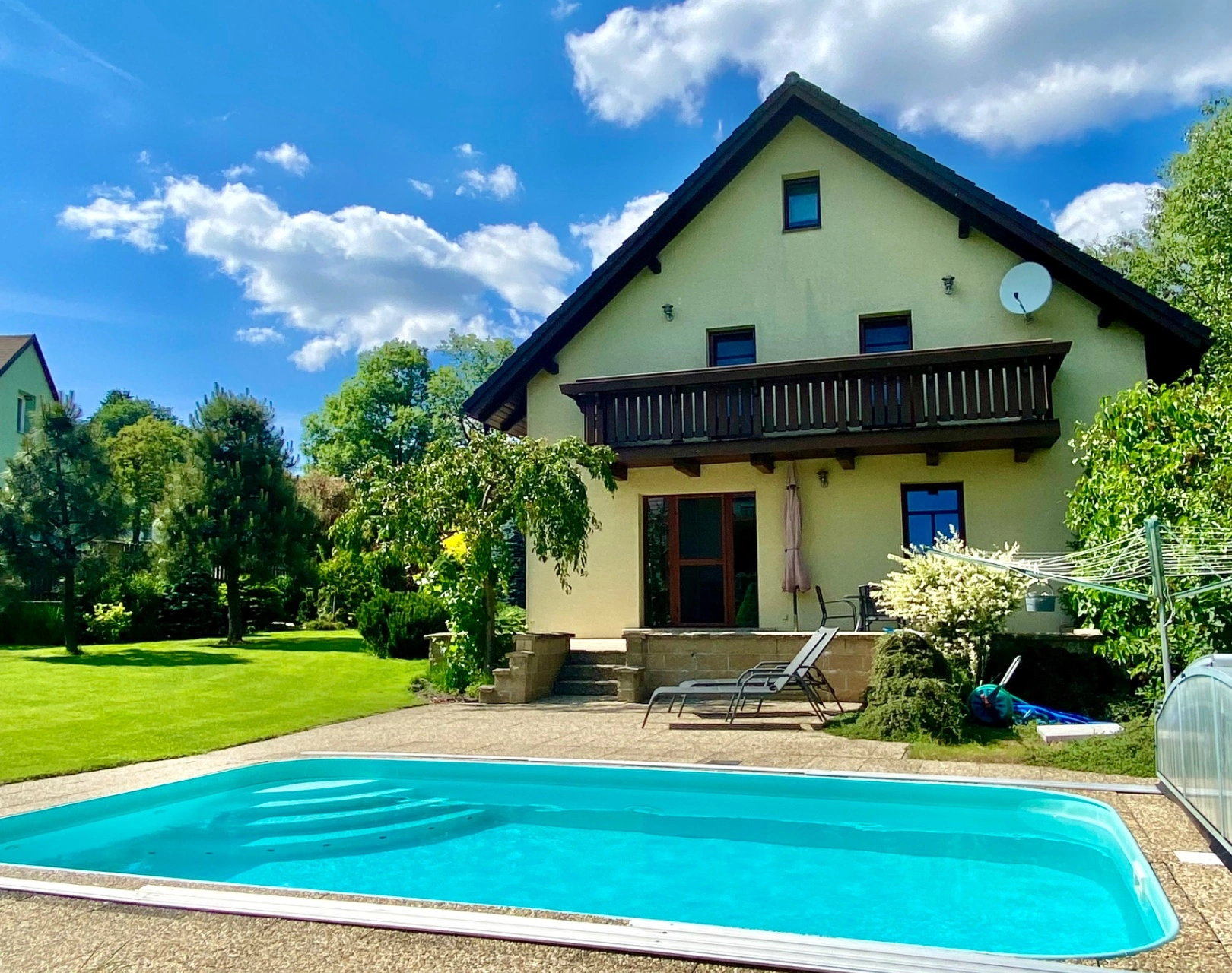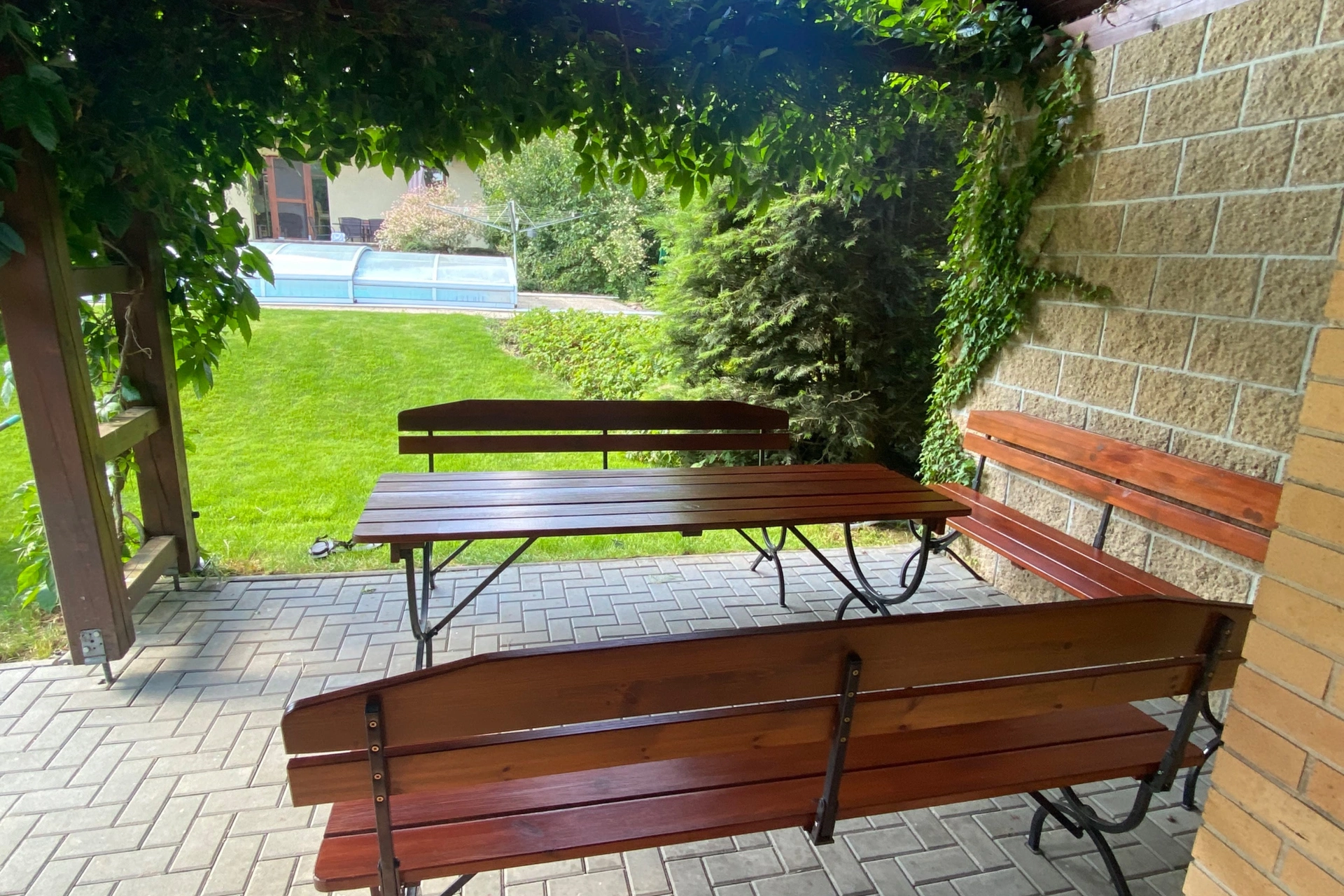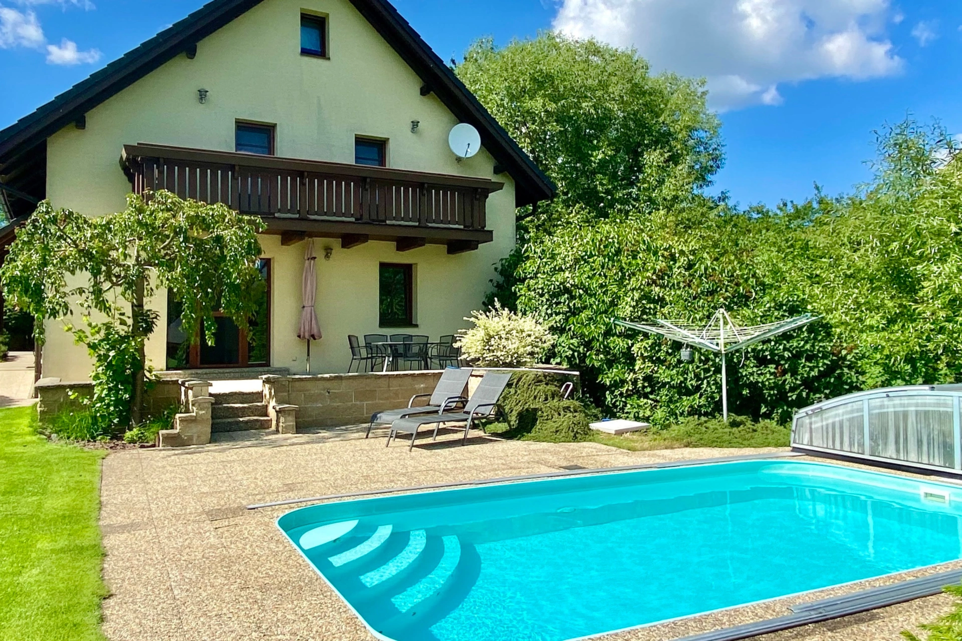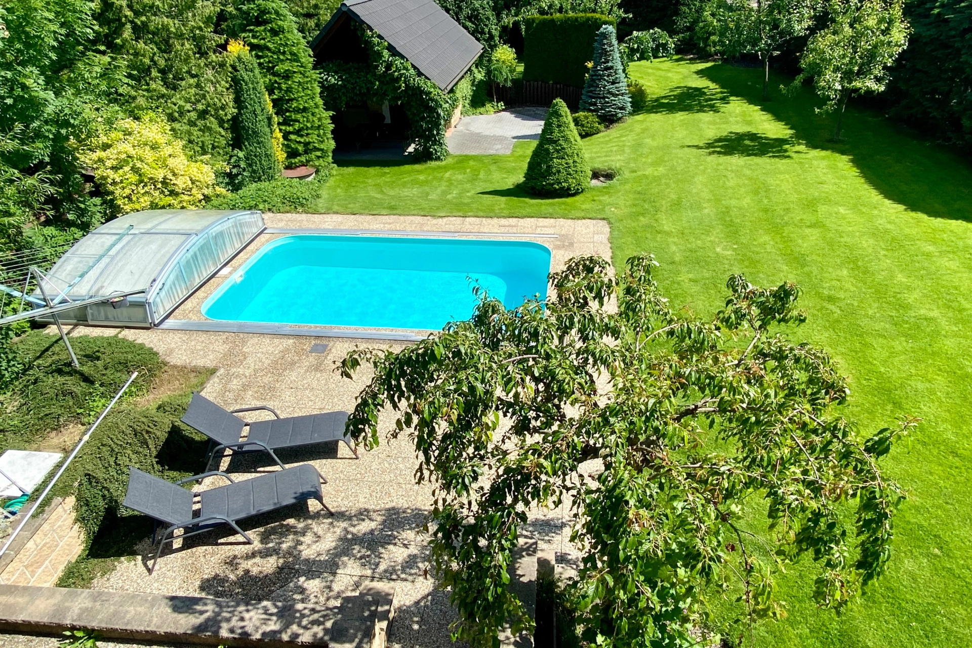Hosté mohou využívat venkovní bazén v letních měsících a celoročně dostupnou vířivou vanu. Rozlehlá oplocená zahrada poskytuje prostor k relaxaci i venkovním aktivitám. K dispozici je terasa s posezením, gril, ohniště a vybavení pro děti.