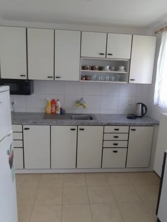 K dispozici jsou dvě samostatné ložnice. První ložnice je čtyřlůžková s manželskou postelí a dvěma samostatnými lůžky. Druhá ložnice je pětilůžková, vybavená manželskou postelí a třemi samostatnými lůžky. Obývací pokoj je spojený s jídelnou a kuchyní a je vybaven sedačkou, televizí a rádiem.