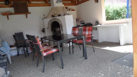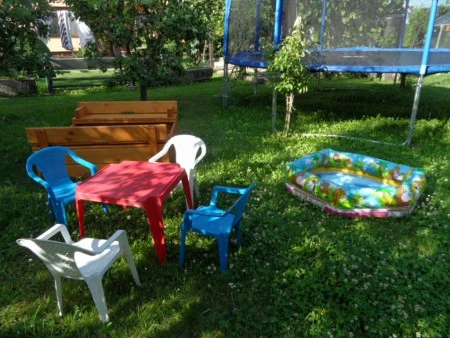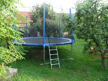 Pro venkovní aktivity je k dispozici zahradní posezení, pergola s krbem, houpací síť, trampolína a pískovištěm s houpačkou. Tento prostor je ideální pro relaxaci a zábavu pro celou rodinu.