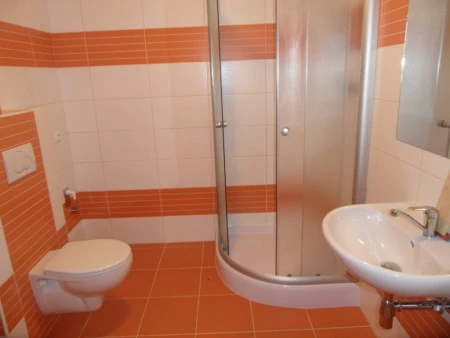 - Koupelna se sprchovým koutem, WC, umyvadlem, fénem a přímotopem