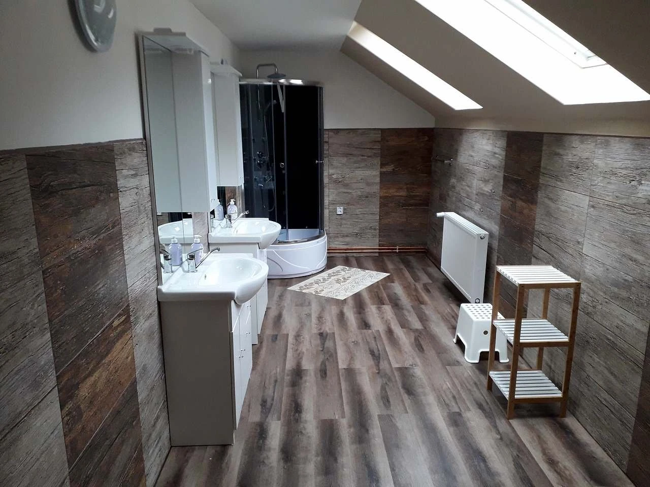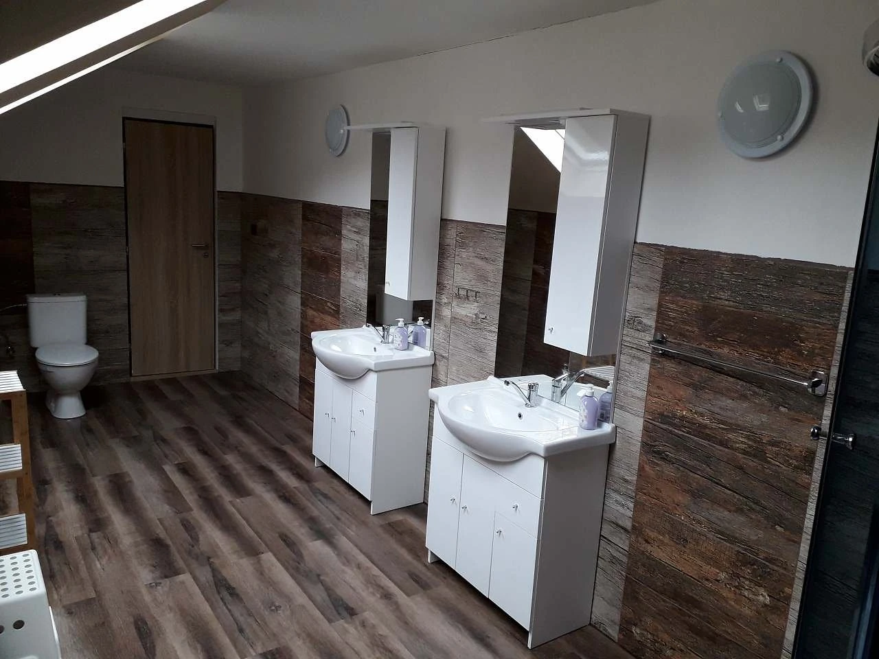 - Koupelna 1: toaleta, sprcha, umyvadlo, sušák na prádlo