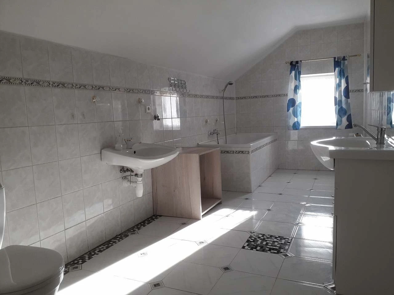 Sociální zařízení tvoří 3 koupelny s WC, z toho 2 s vanou a 1 se sprchovým boxem. Vytápění je zajištěno plynovým kotlem a radiátory s termohlavicemi.