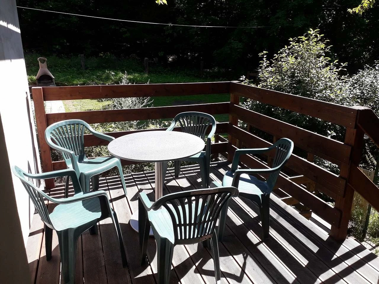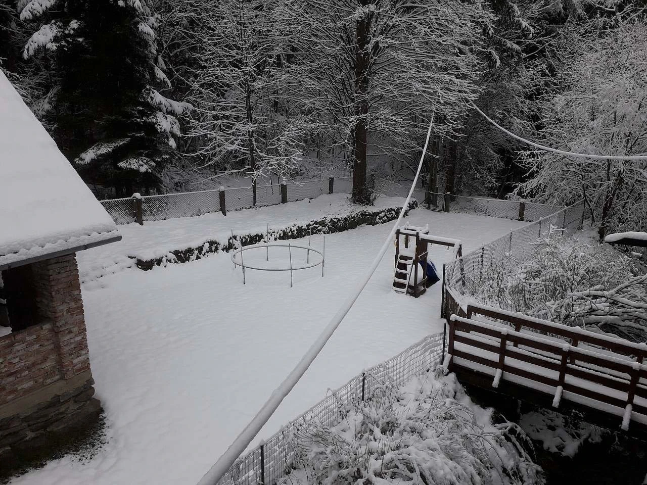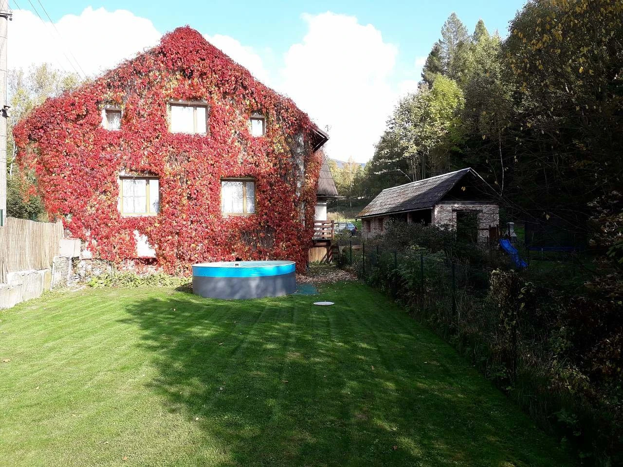 V exteriéru chalupy je venkovní bazén, trampolína, skluzavka a prostorná zahrada přímo sousedící s lesem. Zahrada nabízí zastřešené posezení a prostor pro grilování. Chalupa je částečně oplocená a je zde možnost ubytování se zvířaty.