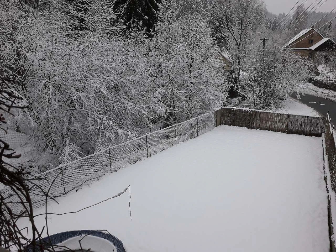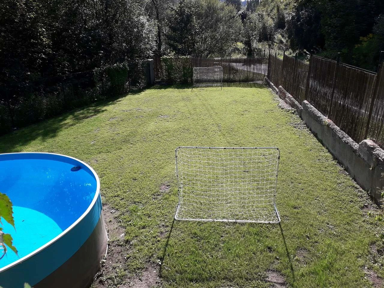 - Prostorná zahrada, travnatá plocha, u potoku a lesa, oploceno.