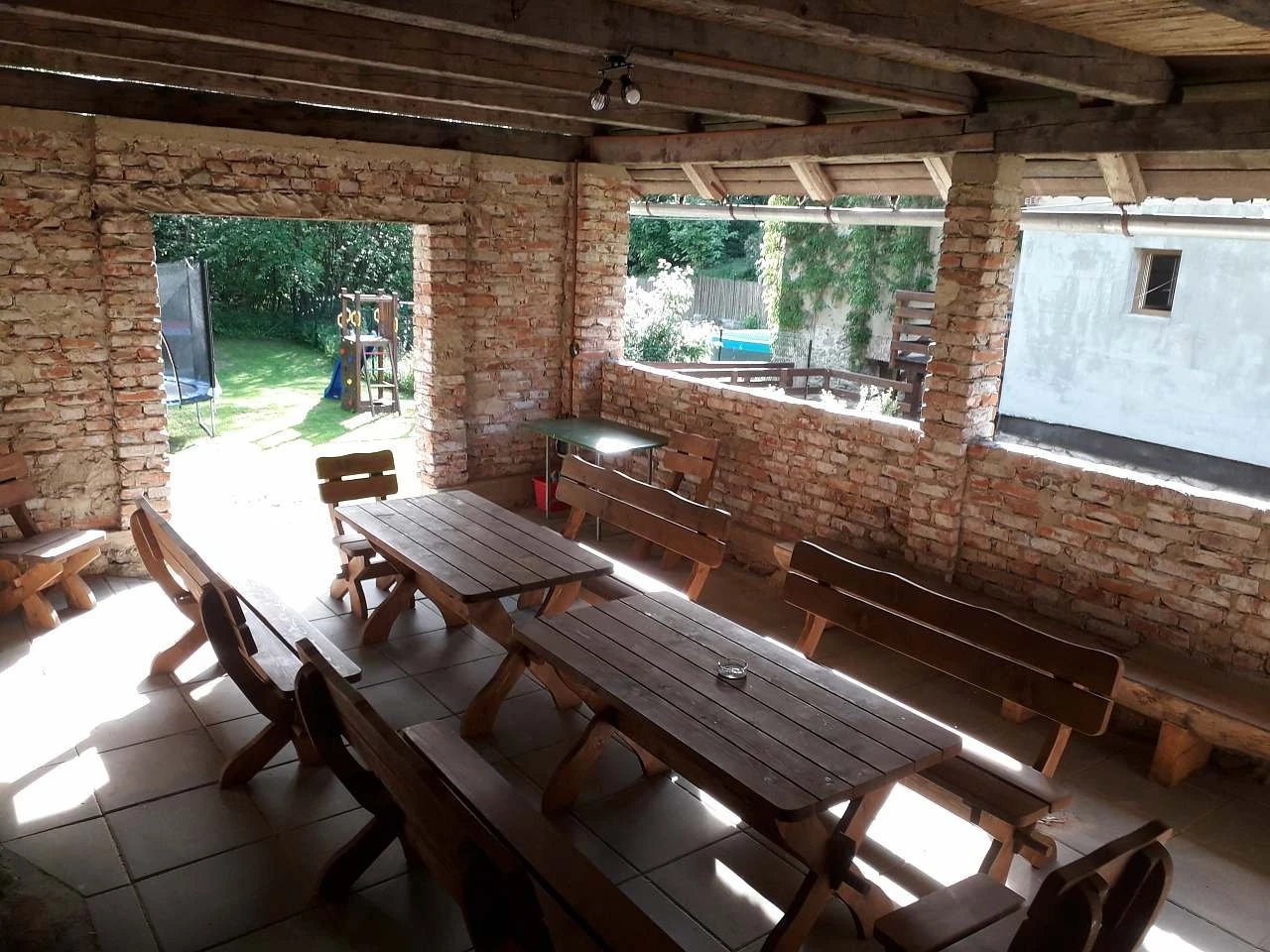 - Terasa (zastřešená), zahradní nábytek, ohniště, venkovní krb / gril, bazén.