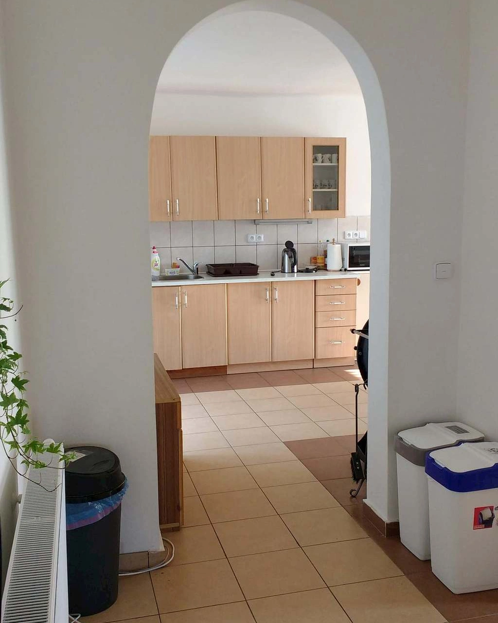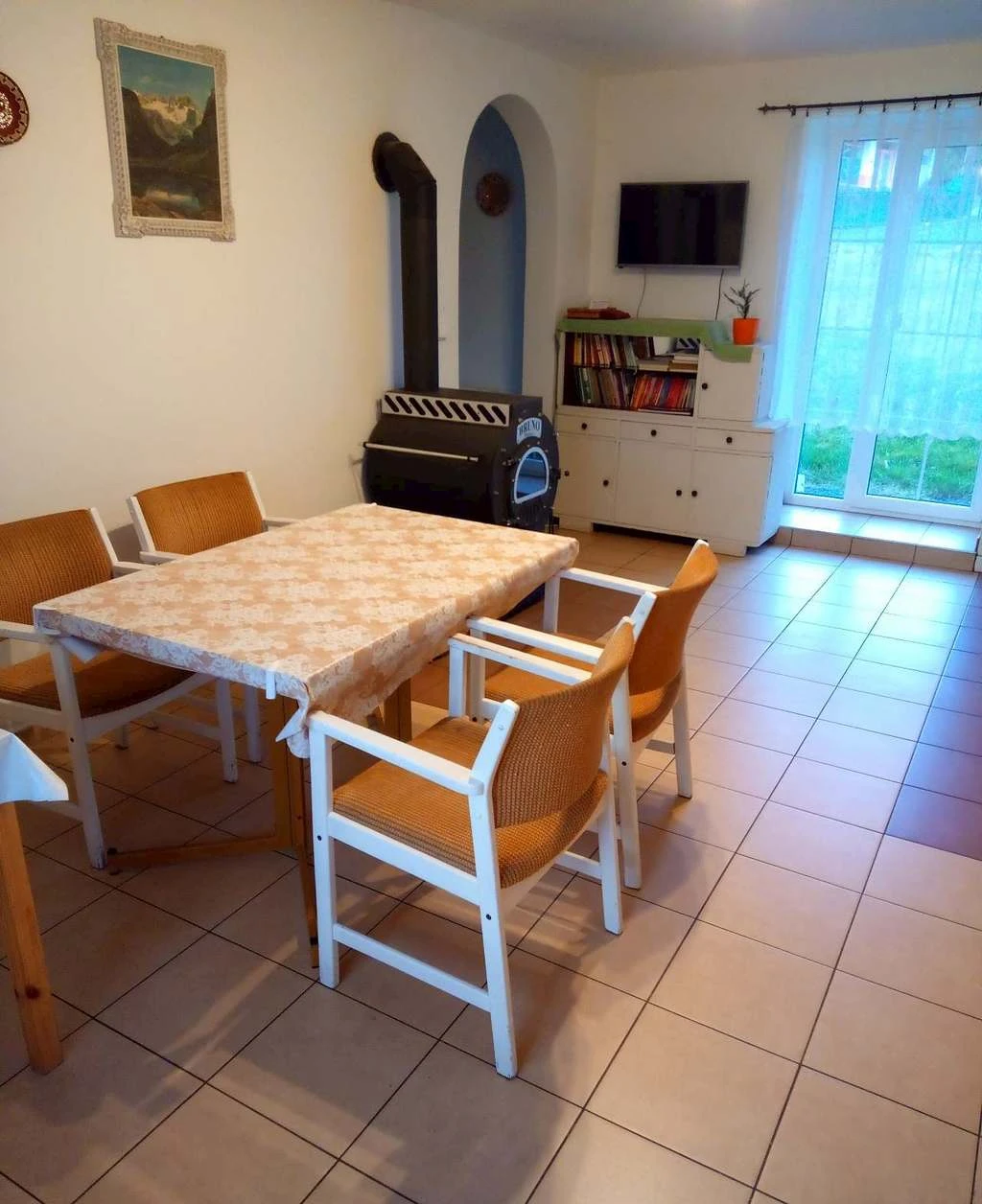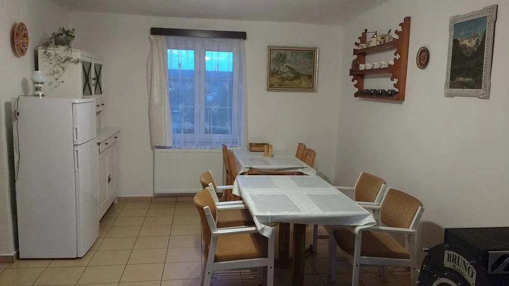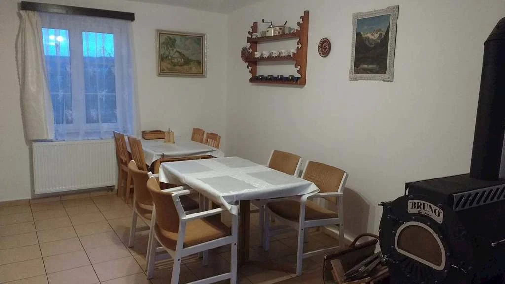 V přízemí se nachází společenská místnost s krbem a plně vybaveným kuchyňským koutem, kde je k dispozici elektrická trouba, sporák, myčka nádobí, lednice s mrazákem, mikrovlnná trouba a rychlovarná konvice. V místnosti je také televize a knihovna. K dispozici je WiFi připojení a pračka.