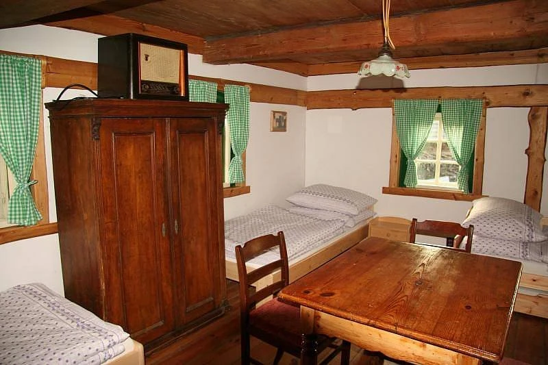 - dřevěný pokoj (manželské lůžko s dětskou postýlkou)