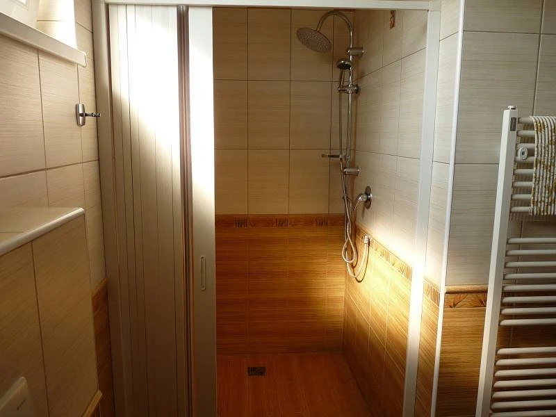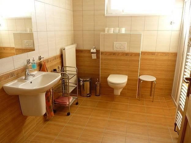 V budově jsou k dispozici 2 koupelny a 3 WC. Budova má centrálně ovládané ústřední topení, které zajišťuje pohodlné vytápění během pobytu.