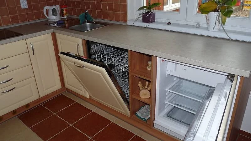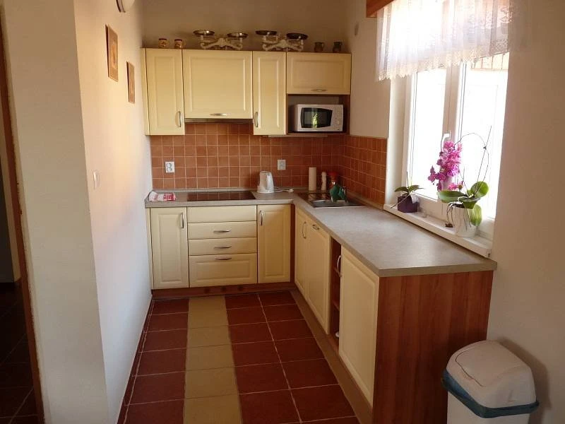 - Kuchyňka s varnou deskou, mikrovlnkou, lednicí, myčkou nádobí a kuchyňským nádobím