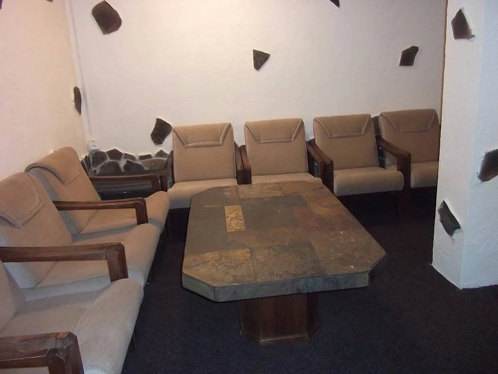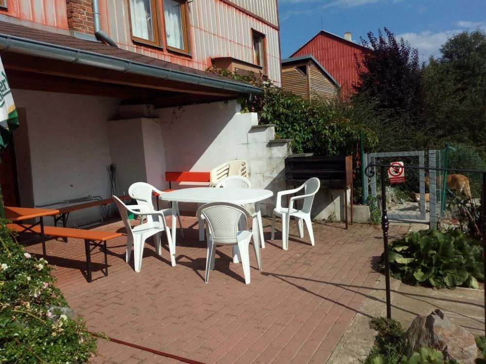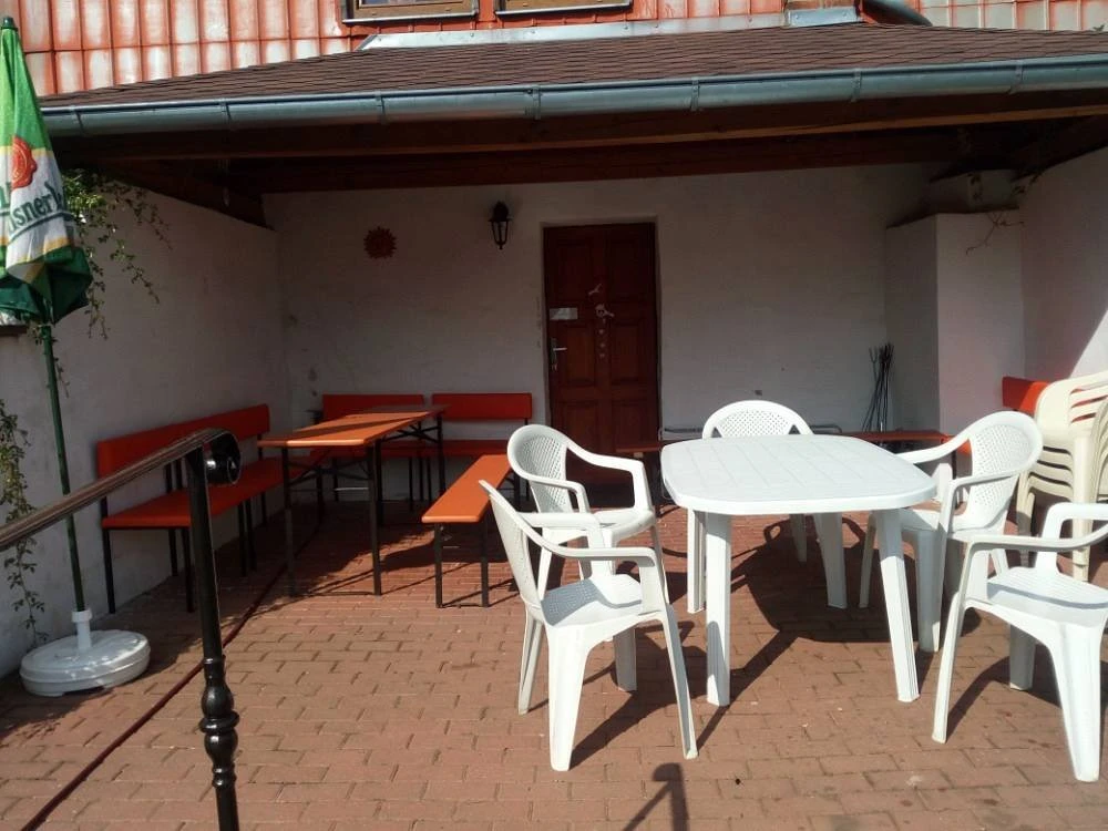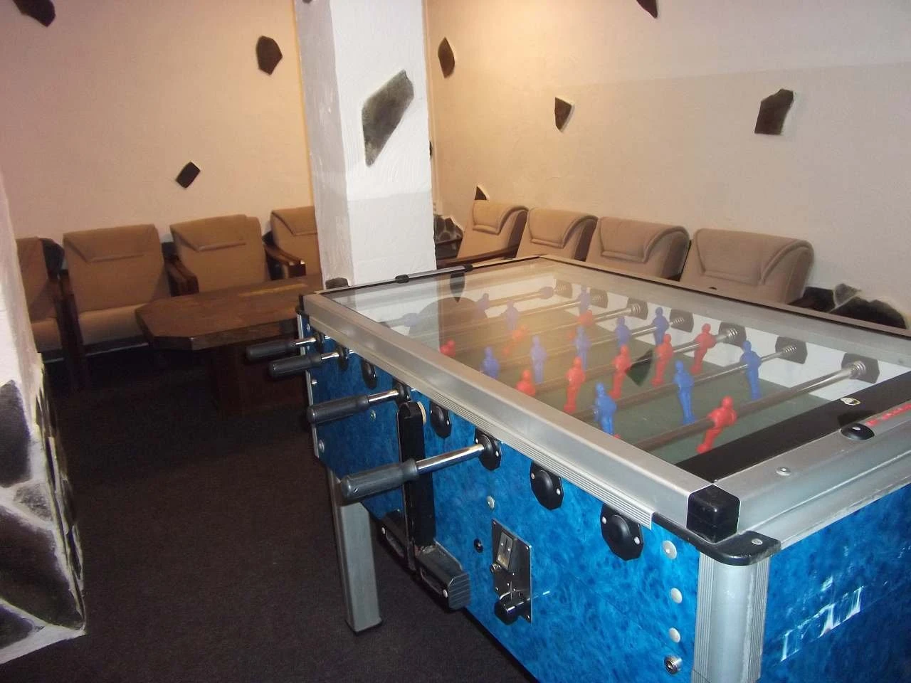 K dispozici je společenská místnost, jídelna a bar včetně výčepního zařízení, terasa s grilem a oplocená zahrada cca 800 m² s ohništěm, houpačkami a skluzavkou.