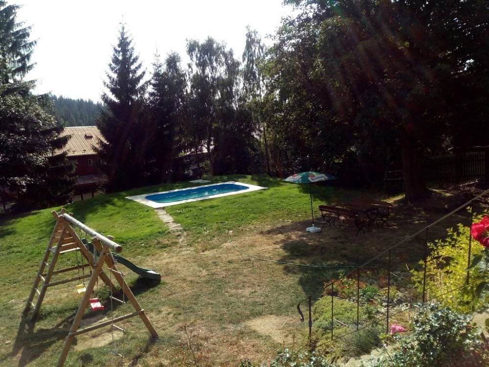 Chata má zapouštěný obdélníkový bazén 7 × 3 × 1,2 m s nočním osvětlením a slanou úpravou vody, v provozu od 1. 5. do 20. 9. K vybavení patří TV se satelitním příjmem, Wi-Fi zdarma a stolní fotbálek.