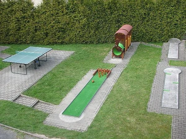 Součástí areálu je víceúčelové hřiště s umělým povrchem vhodné pro tenis, fotbal, nohejbal a další sporty. Dále je zde rozsáhlé zázemí pro volnočasové aktivity, zejména pro děti, včetně houpaček, pískoviště, skluzavky, trampolíny, prolézaček a herních prvků. Pro dospělé i děti jsou k dispozici také biliard, stolní tenis, minigolf, petanque, zahradní bowling a šipky.
