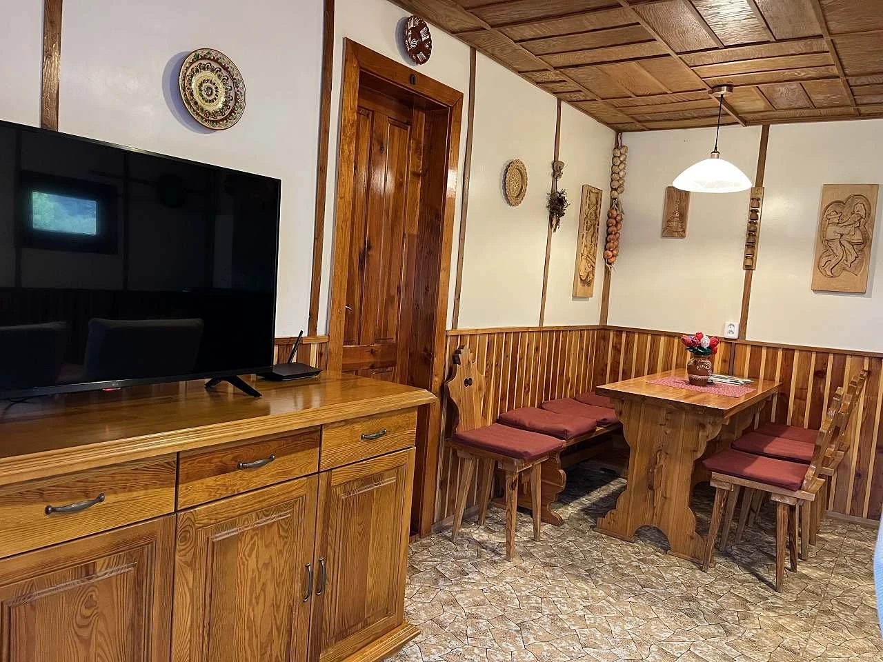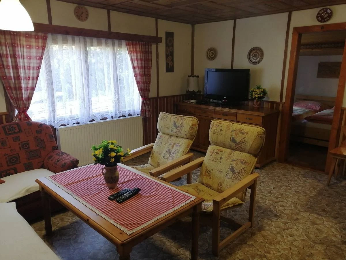 Ubytování a interiér: Chata je nekuřácký objekt a umožňuje pobyt domácích mazlíčků. K dispozici je společenská místnost, dětská postýlka, krb / krbová kamna, televize se satelitním příjmem, rychlovarná konvice, mikrovlnná trouba, lednička, pračka a sprchový kout.