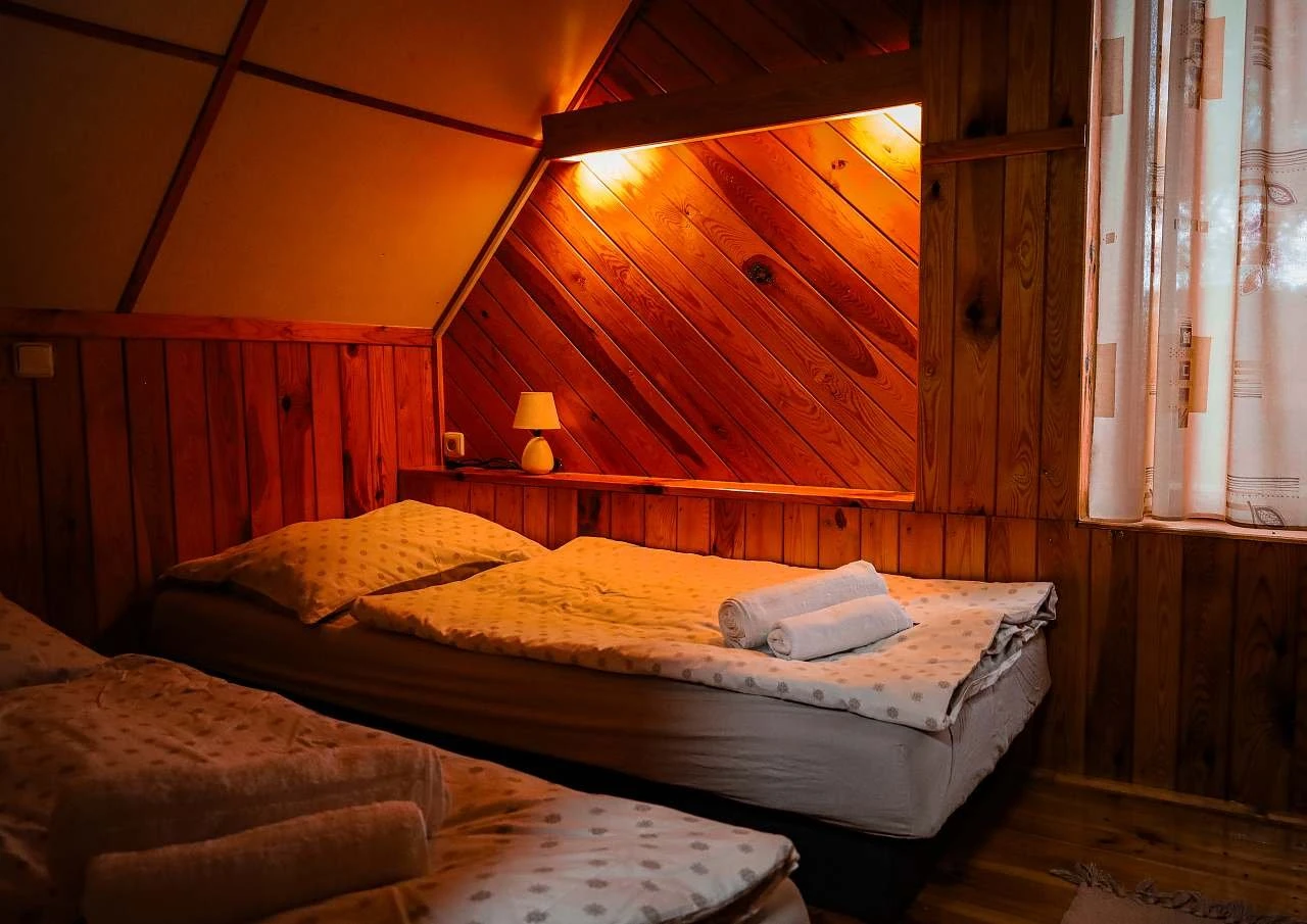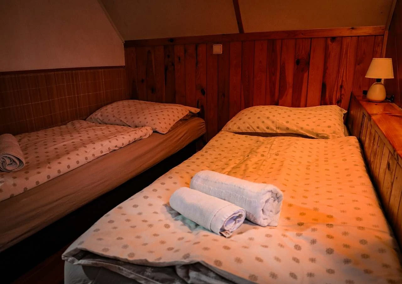 V podkroví jsou 2 oddělené ložnice – jedna s manželskou postelí, druhá se 2 samostatnými lůžky, přičemž v jedné ložnici je možnost přistýlky. K dispozici je ložní prádlo a ručníky.