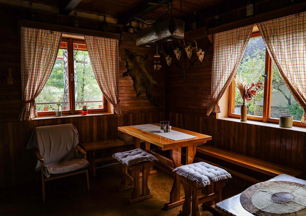 Chata je vybavena udírou, krbem a venkovním posezením pod pergolou. Nachází se v klidné osadě Chodeč, u lesa.