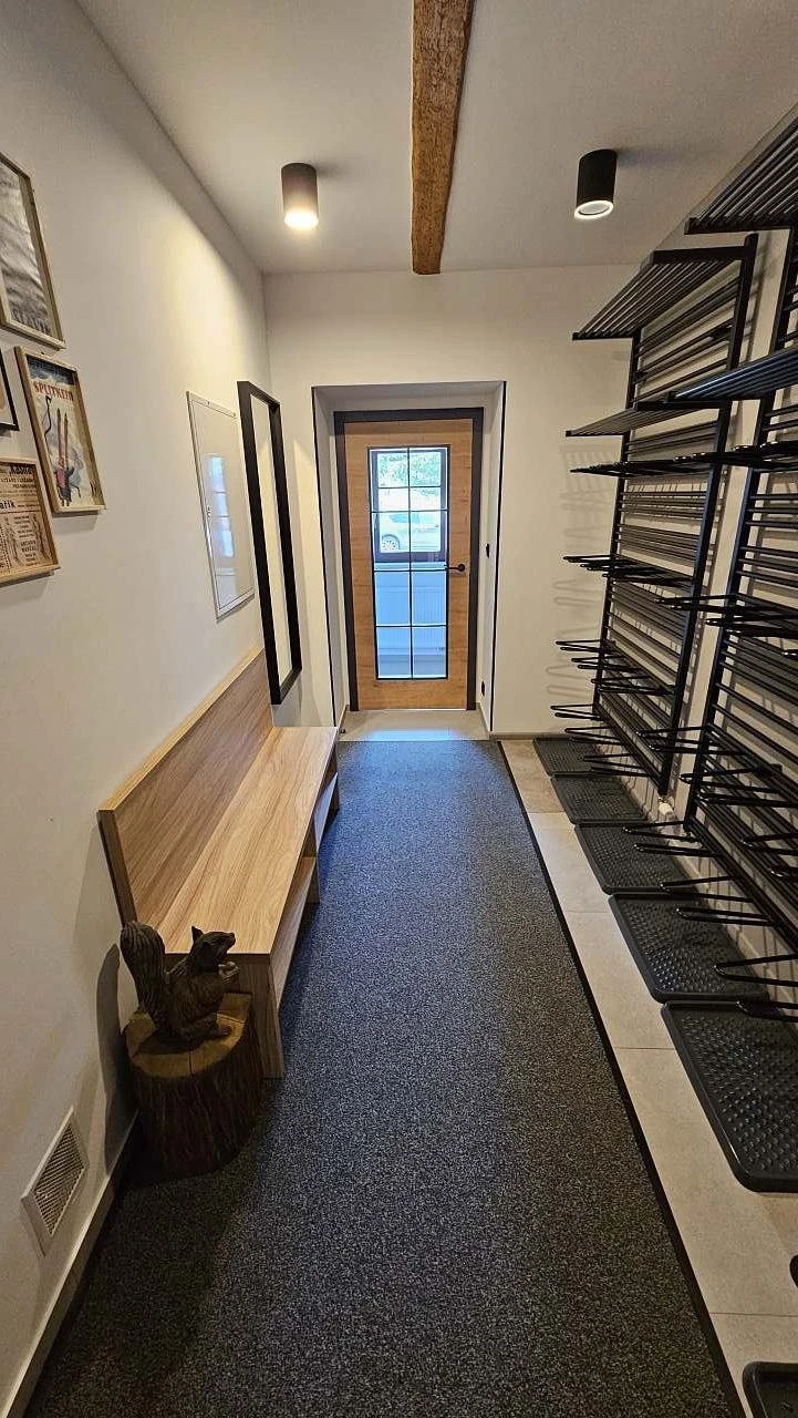 - Lyže k uskladnění ve vstupní předsíni (lyžárna)