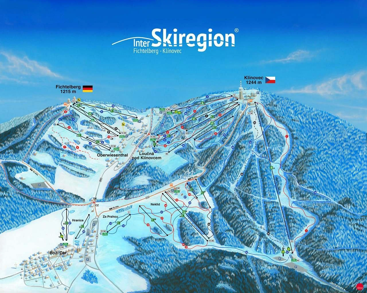 - Oberwiesenthal (Německo) – město za hranicí s rozhlednou a turistickými trasami.
