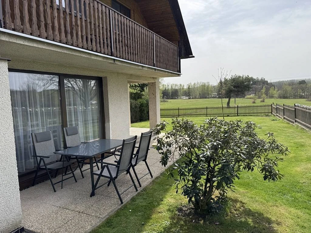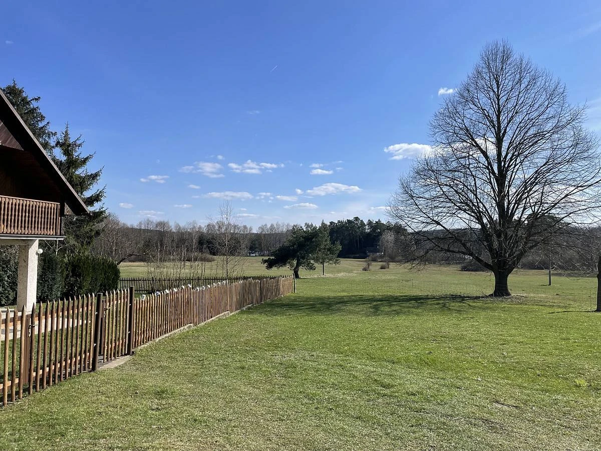Součástí vybavení je vnitřní krb, zahradní nábytek, venkovní gril, možnost uložení kol v garáži a ohniště na zahradě. V okolí rybníka je k dispozici občerstvení, teplá kuchyně, půjčovna šlapadel a sportovní aktivity.