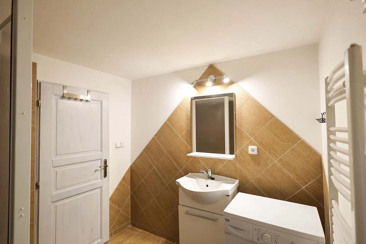 Sociální zařízení: koupelna se sprchovým koutem, samostatné WC, pračka.
