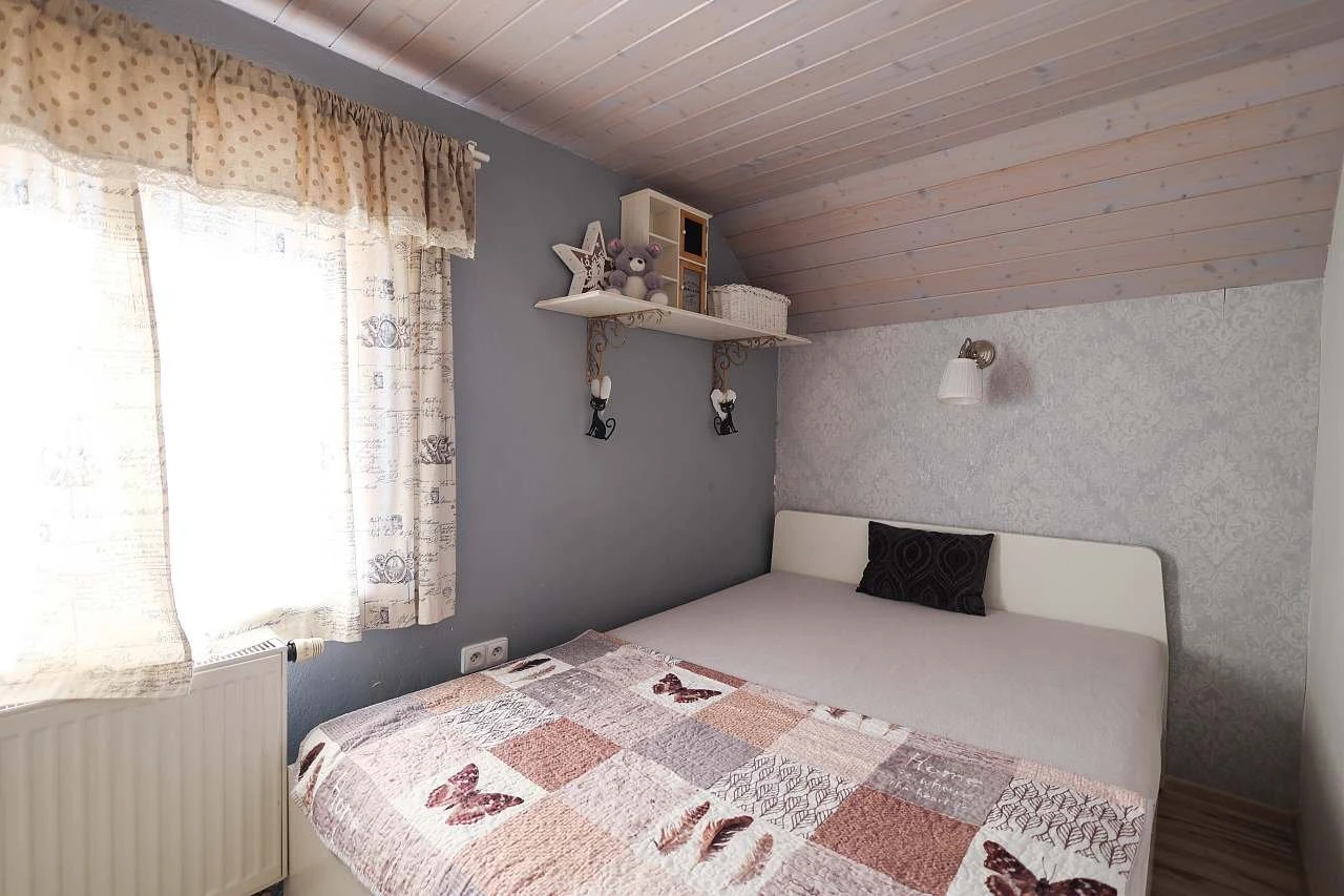 Ložnice a pokoje: 2 ložnice s dvoulůžky, možnost přistýlek pro 2 osoby v podkroví (místnost není uzavíratelná).