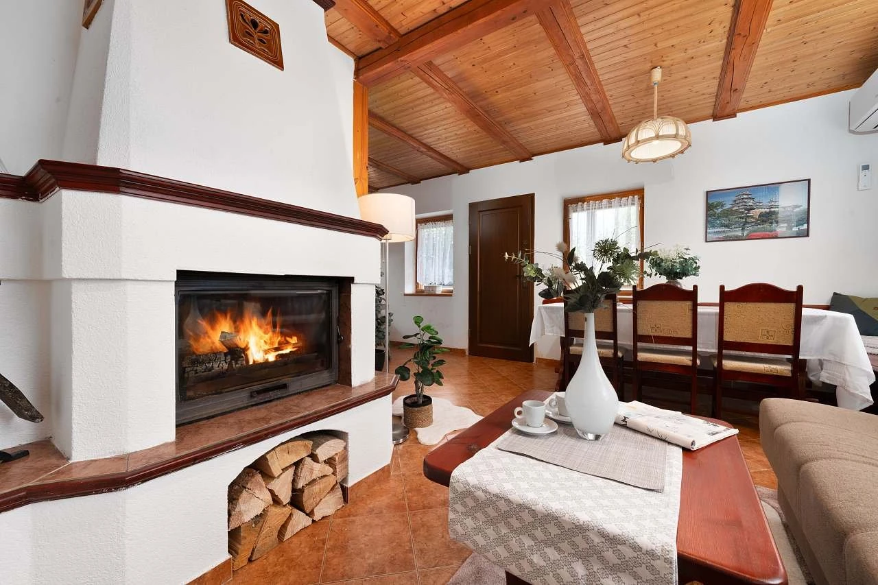 - Nová klimatizace, krbová kamna (dřevo k dispozici), elektrické přímotopy v každé ložnici.