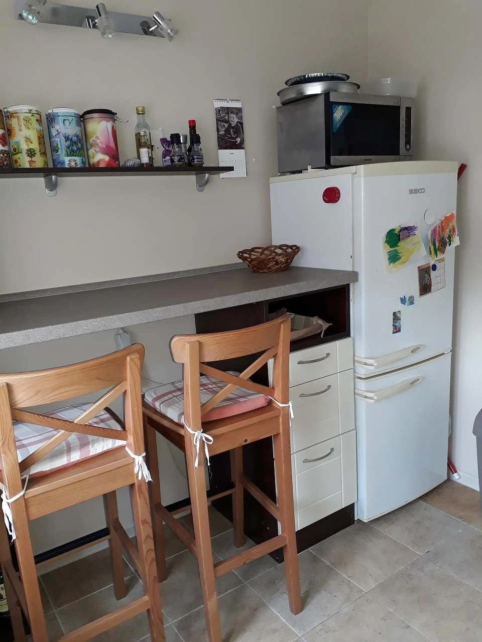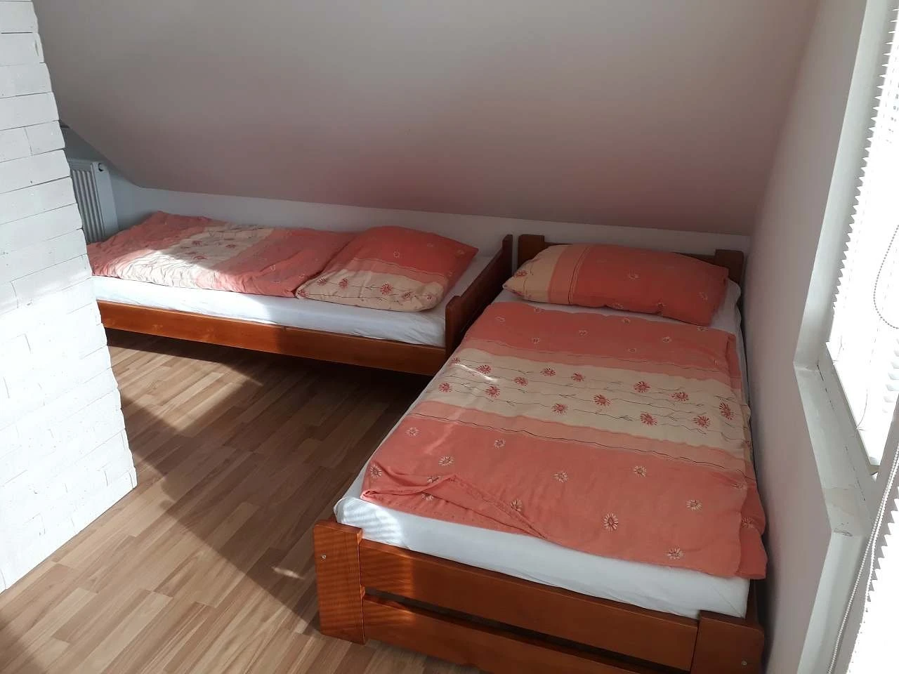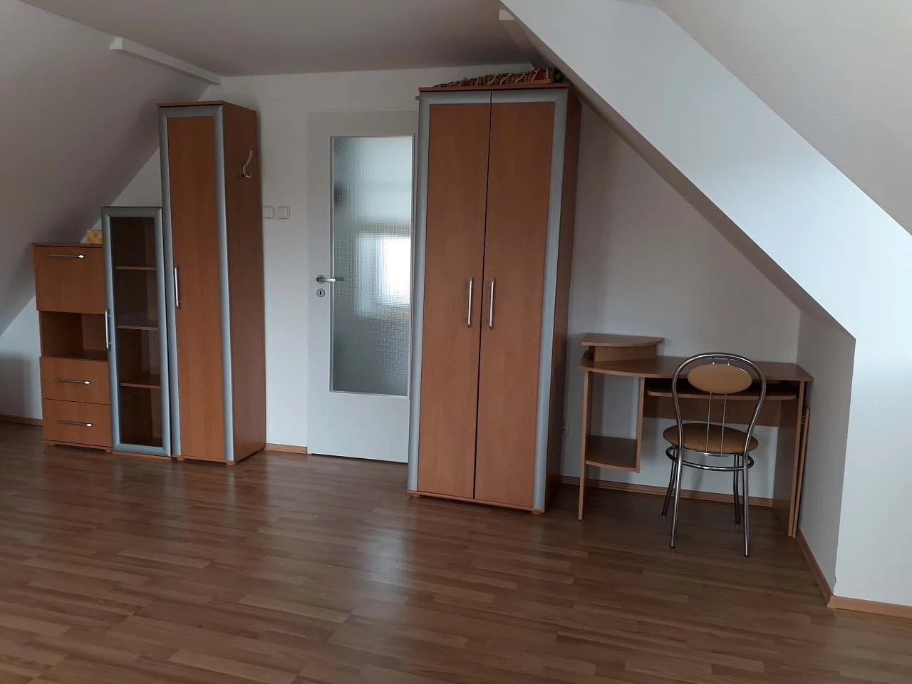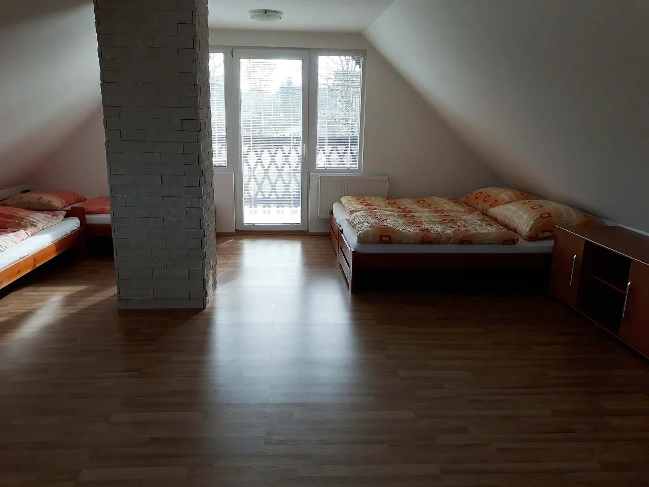 V podkroví je velká ložnice se čtyřmi samostatnými lůžky, možností dětské postýlky, úložnými skříňkami a psacím stolem s lampičkou. Z ložnice je vstup na krytý balkón. Podlahy jsou řešeny dlažbou v přízemí a plovoucí podlahou v ložnici. Objekt je částečně podsklepený.