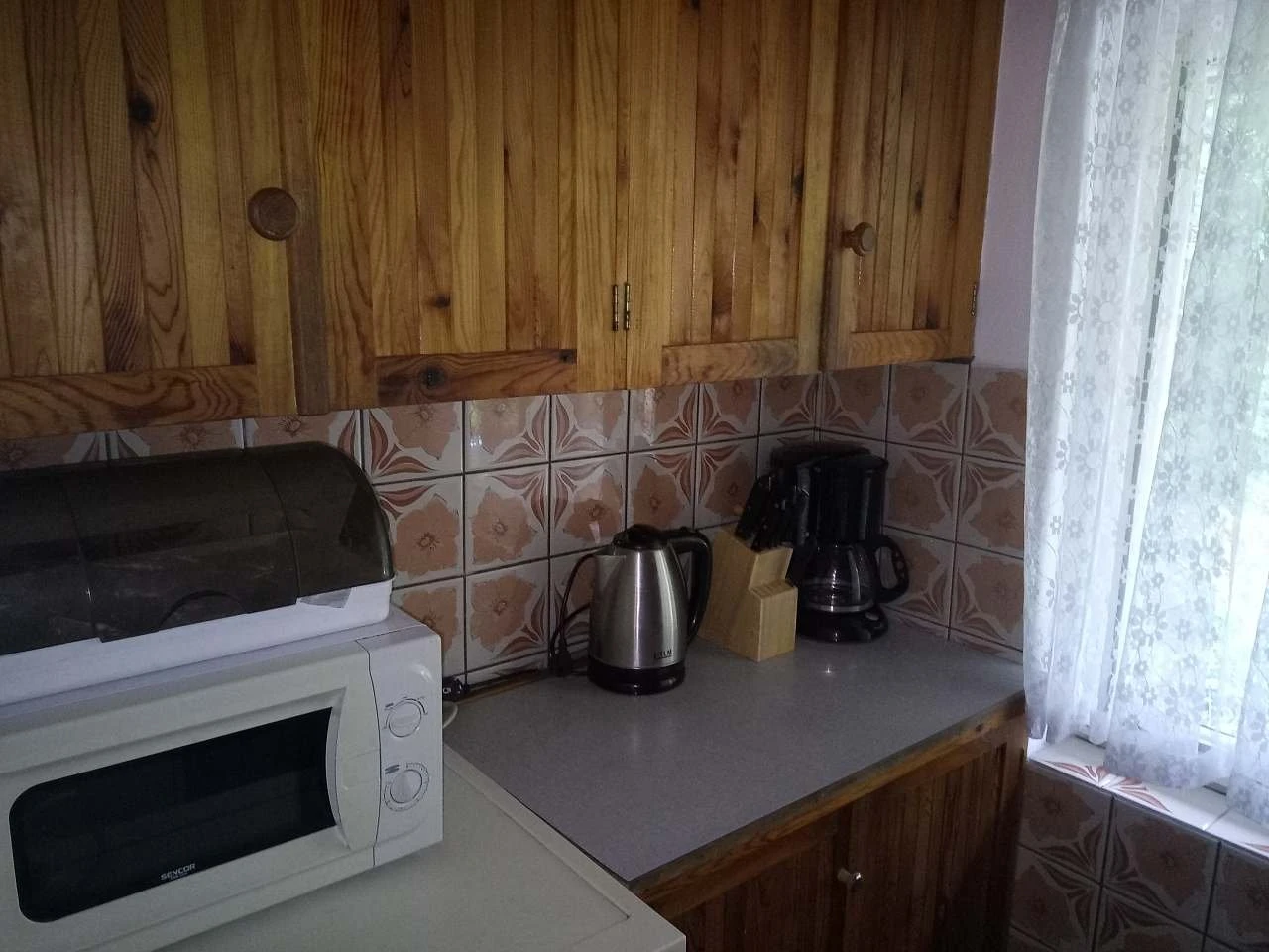Plynový sporák s elektrickou troubou, mikrovlnná trouba, rychlovarná konvice, překapávač na kávu, toustovač, topinkovač