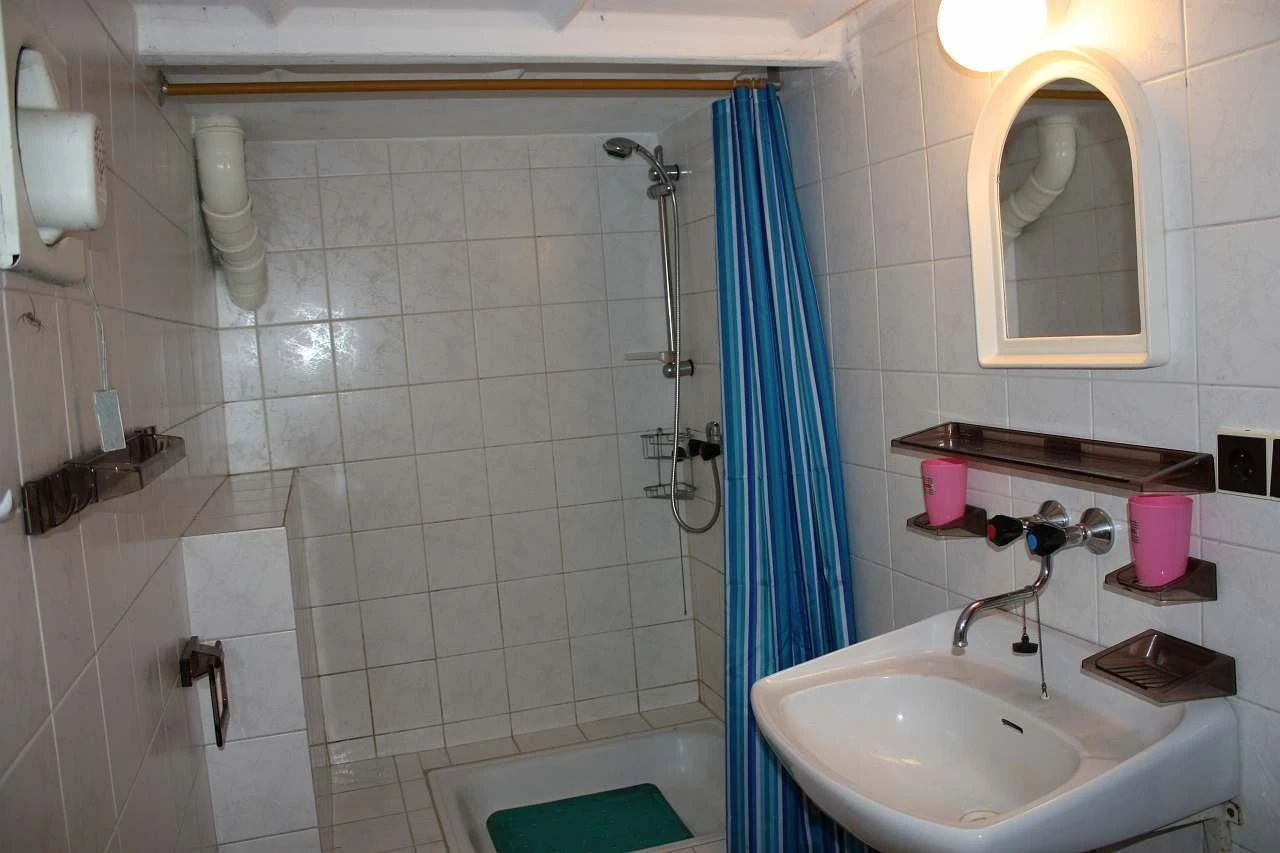 Krb / krbová kamna, televize, satelit, mikrovlnná trouba, rychlovarná konvice, lednice, sprchový kout
