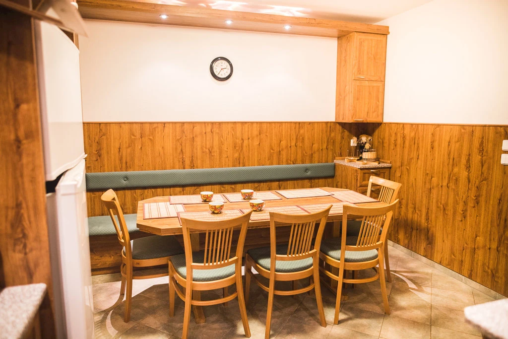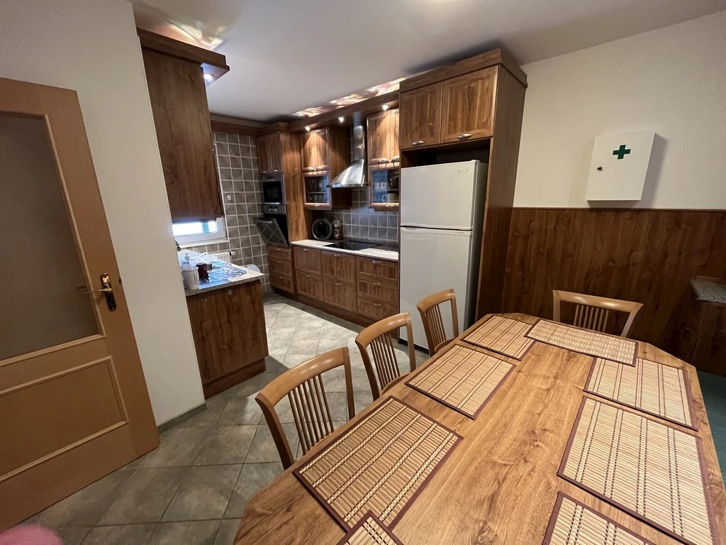 | Kuchyně (1. patro) | Jídelní stůl s lavicí + 5 židlí, lednice s mrazákem, mikrovlnná a horkovzdušná trouba, myčka, sklokeramická varná deska, rychlovarná konvice, kávovar DeLonghi, kontaktní gril, sušička, kompletní nádobí |