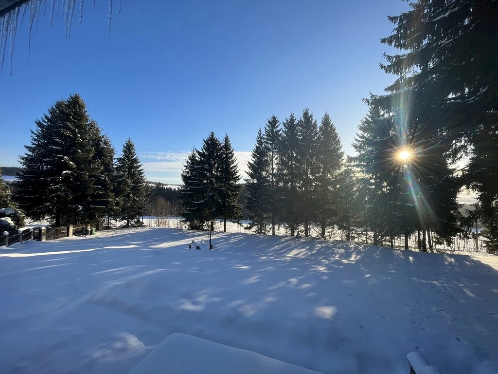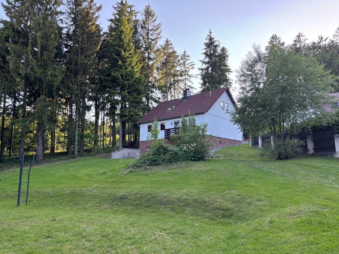 Celý oplocený pozemek o rozloze 2 600 m² zahrnuje zahradu s venkovním hřištěm, terasu s posezením a prostor pro uložení kol či sportovního vybavení. Chata disponuje soukromým parkovištěm.