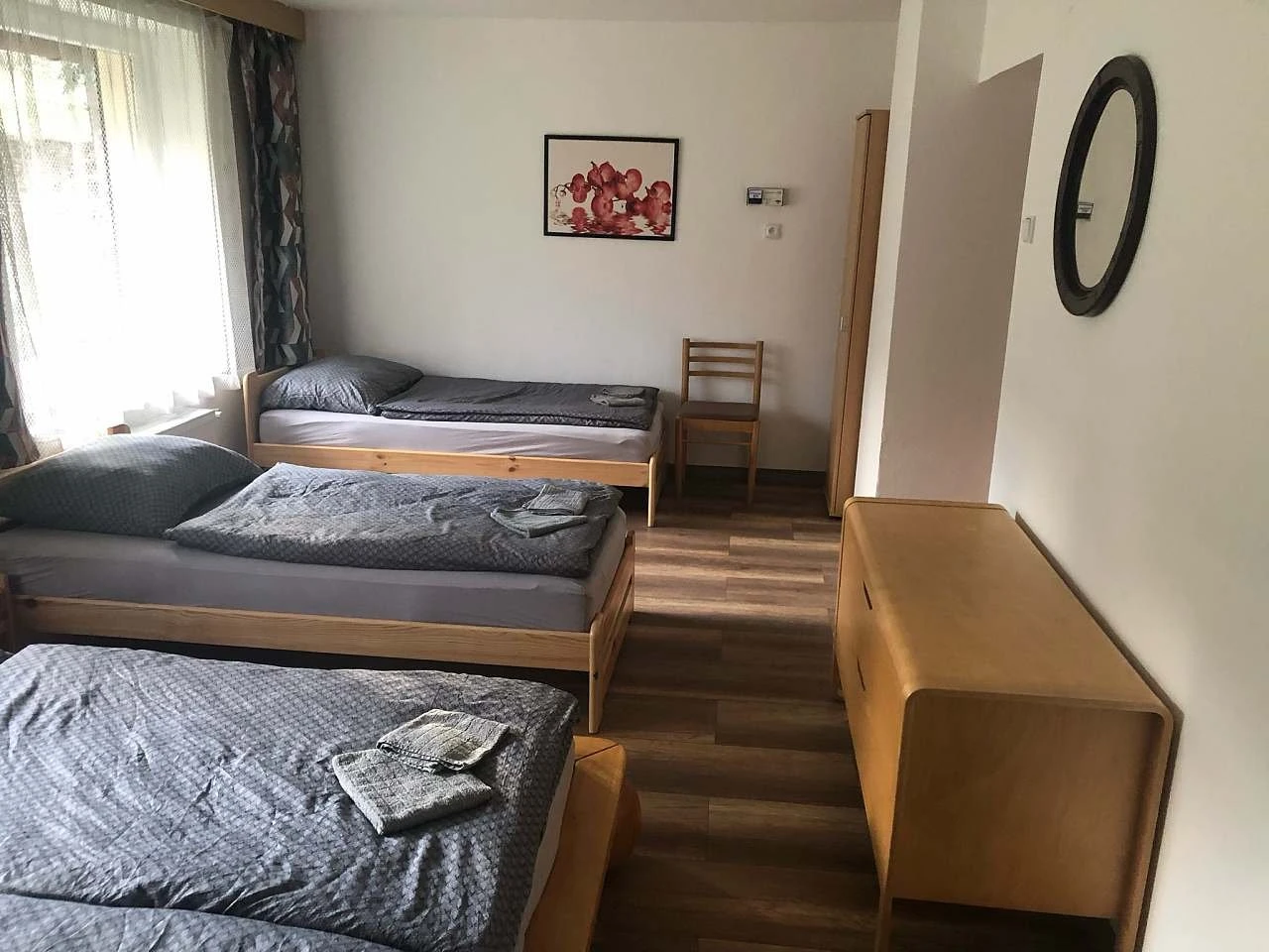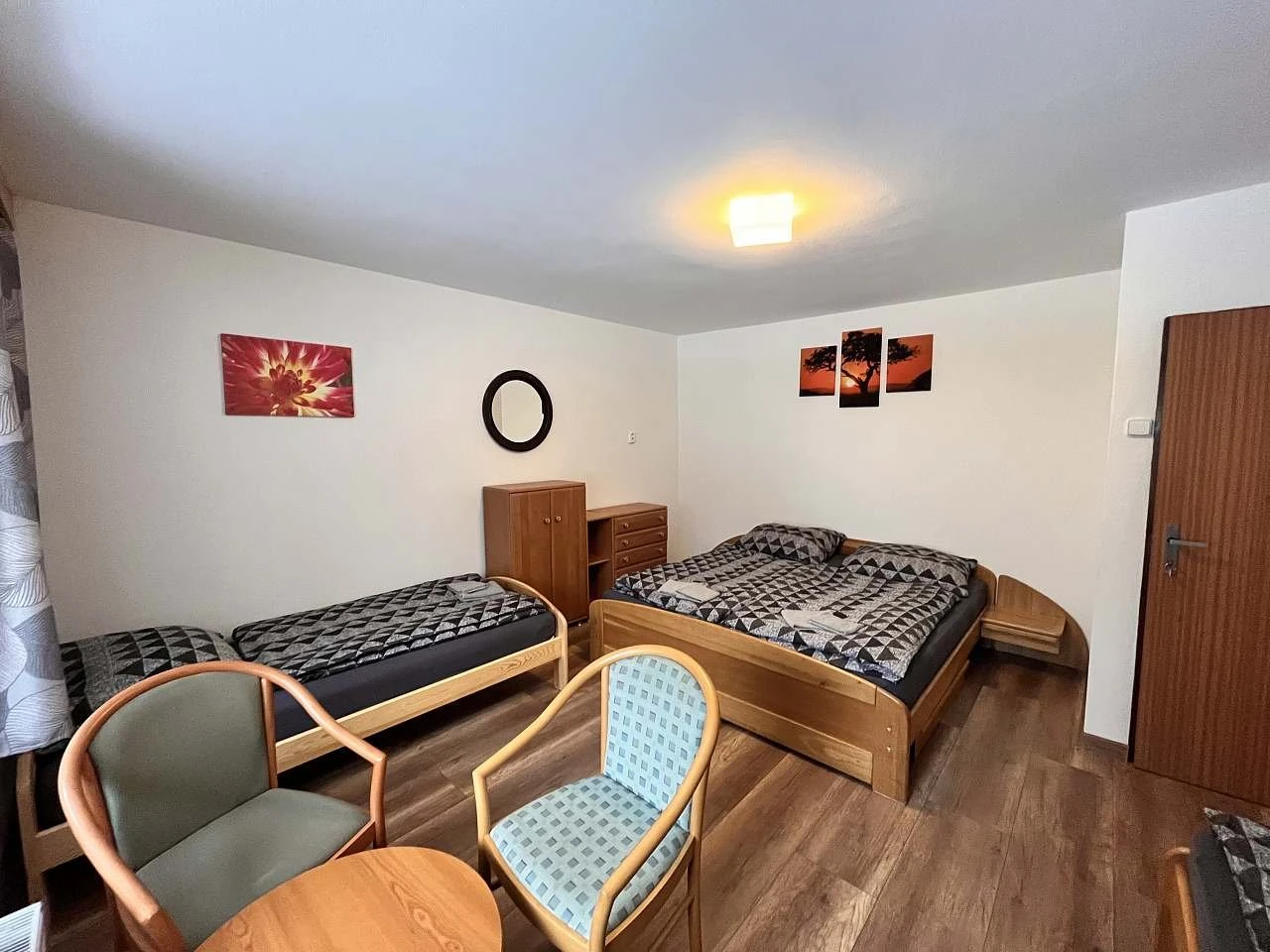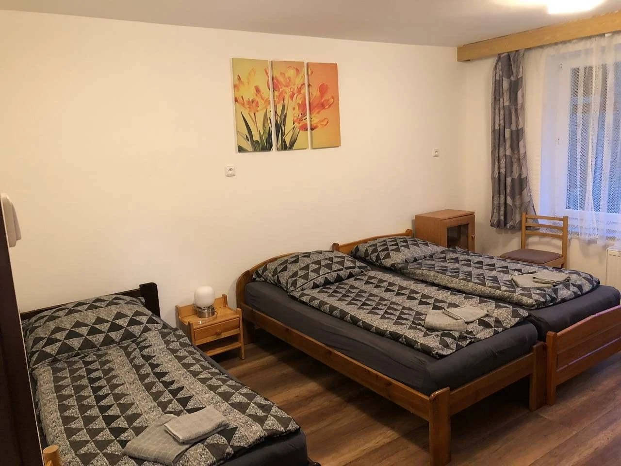Ubytování nabízí celkem 6 ložnic s následujícím rozložením: 1 dvoulůžkový pokoj, 2 třílůžkové pokoje a 3 čtyřlůžkové pokoje, přičemž ve dvou čtyřlůžkových pokojích je manželská postel. Sociální zázemí tvoří 2 koupelny se čtyřmi sprchovými kouty a 6 samostatných WC, což zajišťuje dostatečný komfort i pro větší skupiny.