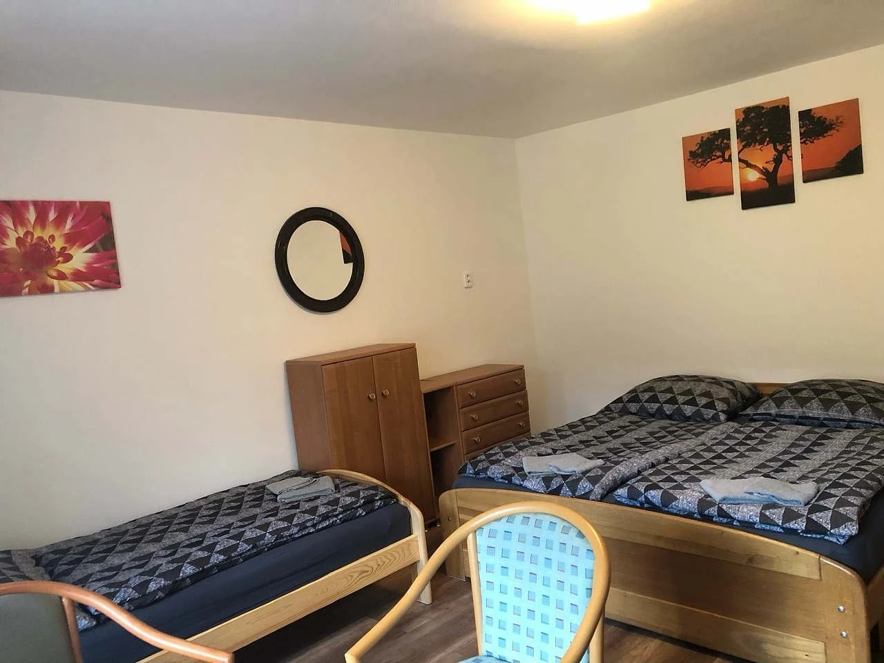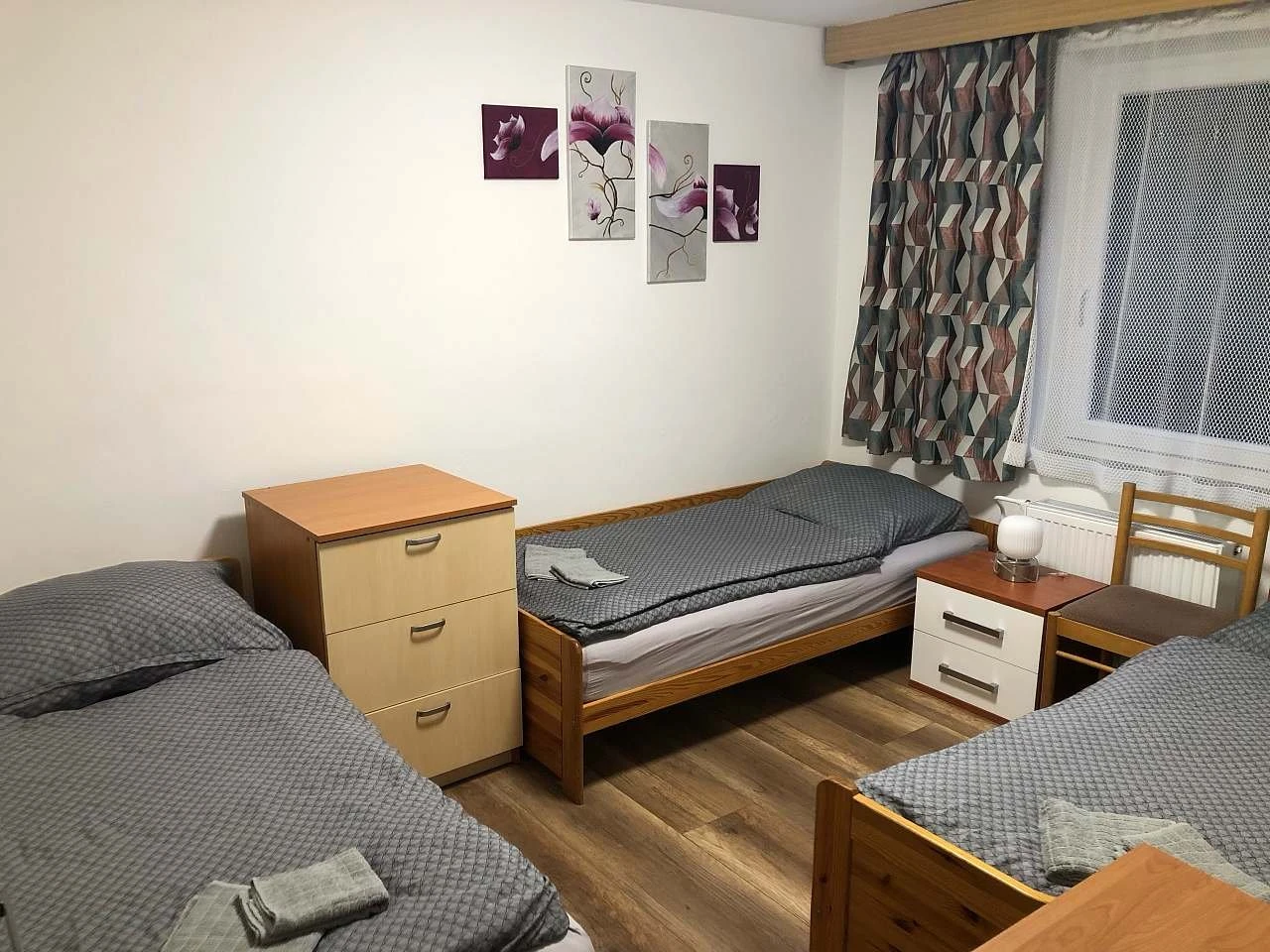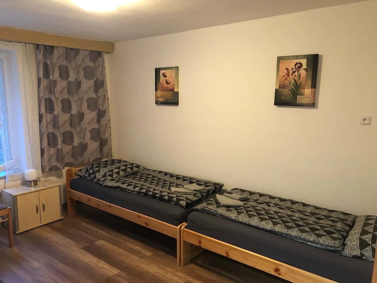 Ubytování nabízí celkem 6 ložnic s následujícím rozložením: 1 dvoulůžkový pokoj, 2 třílůžkové pokoje a 3 čtyřlůžkové pokoje, přičemž ve dvou čtyřlůžkových pokojích je manželská postel. Sociální zázemí tvoří 2 koupelny se čtyřmi sprchovými kouty a 6 samostatných WC, což zajišťuje dostatečný komfort i pro větší skupiny.